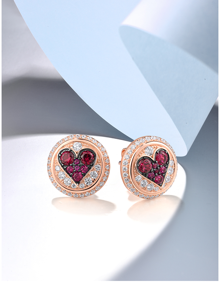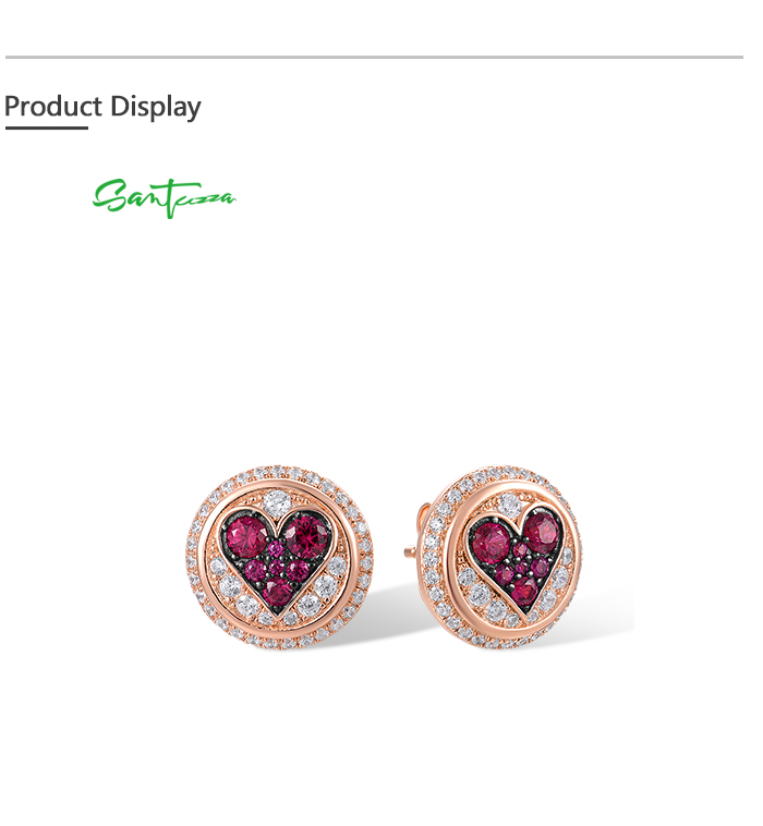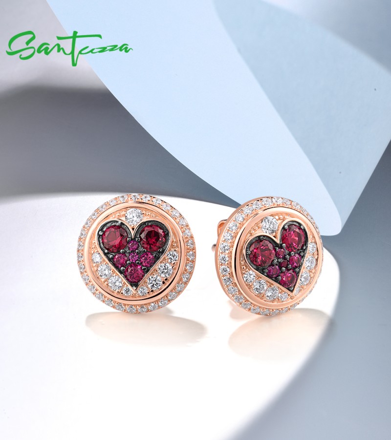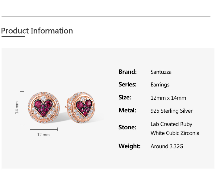 SANTUZZA 925 Sterling Silver Earrings Studs White CZ Ruby Heart Jewelry