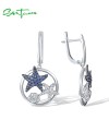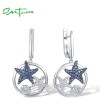 SANTUZZA 925 Sterling Silver Earrings Blue Nano White CZ Star Fish Sea Shell Ocean Fine Jewelry