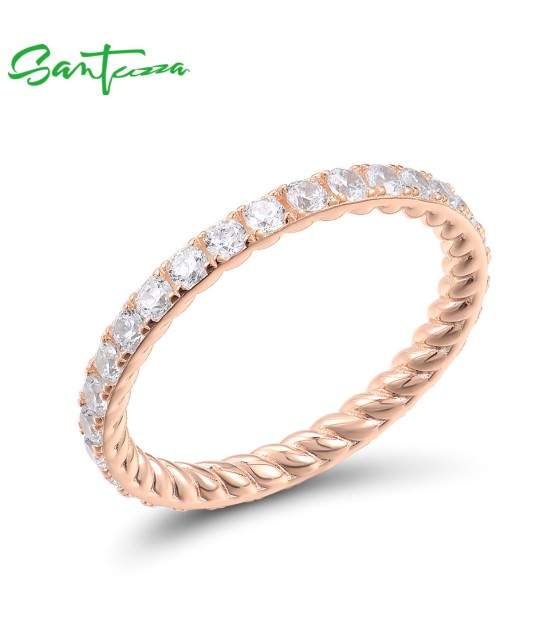 SANTUZZA 925 Sterling Silver Rings For Women White Cubic Zirconia Stackable Eternity Fine Jewelry