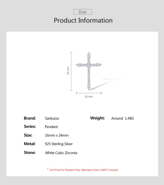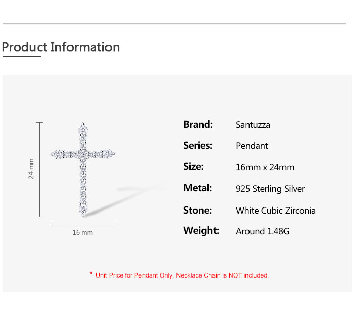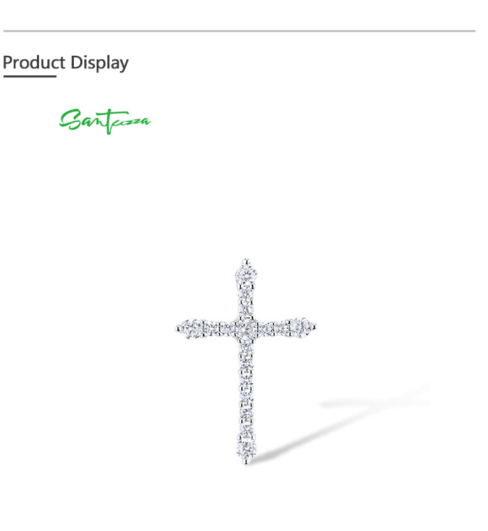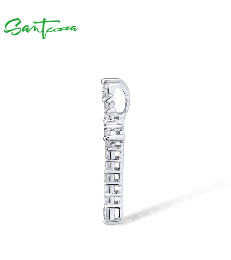 SANTUZZA 925 Sterling Silver Pendant White Cubic Zirconia Cross Pendant Jewelry