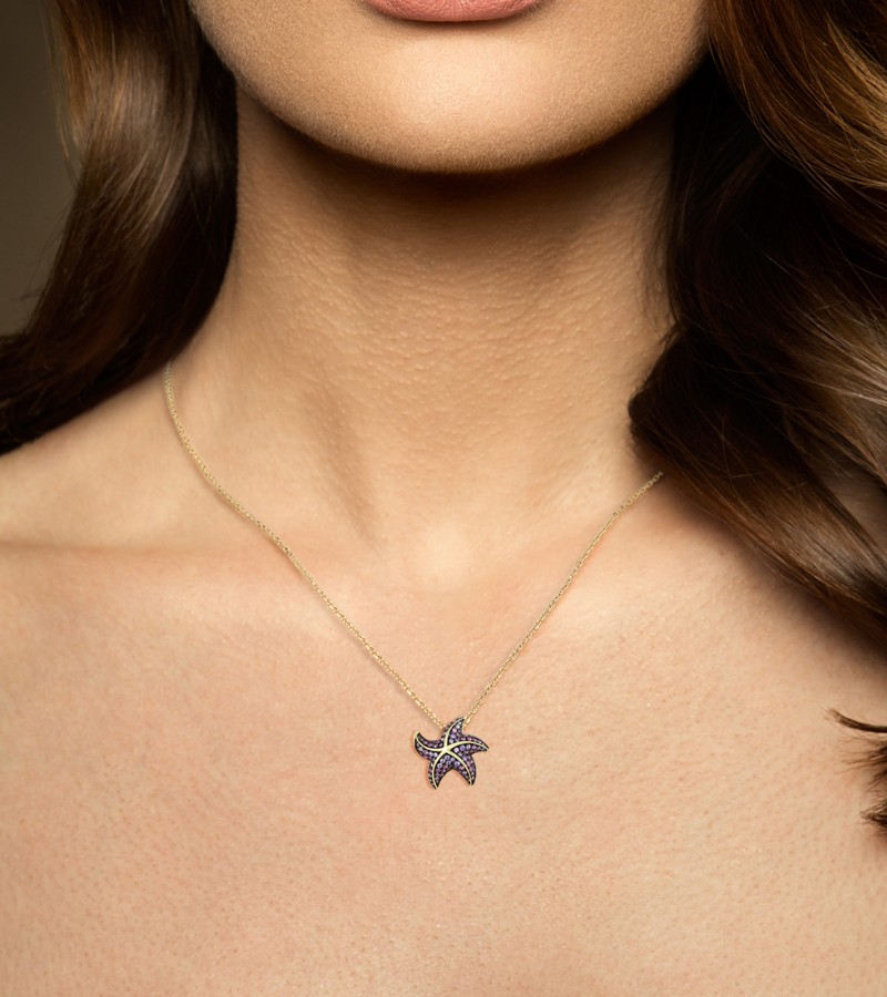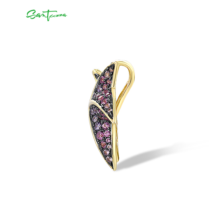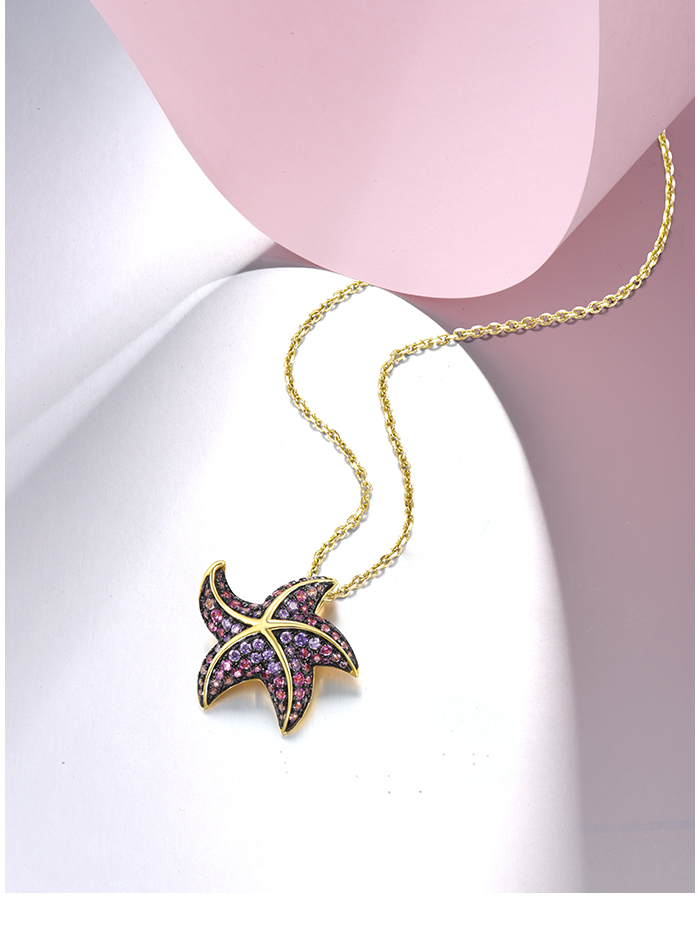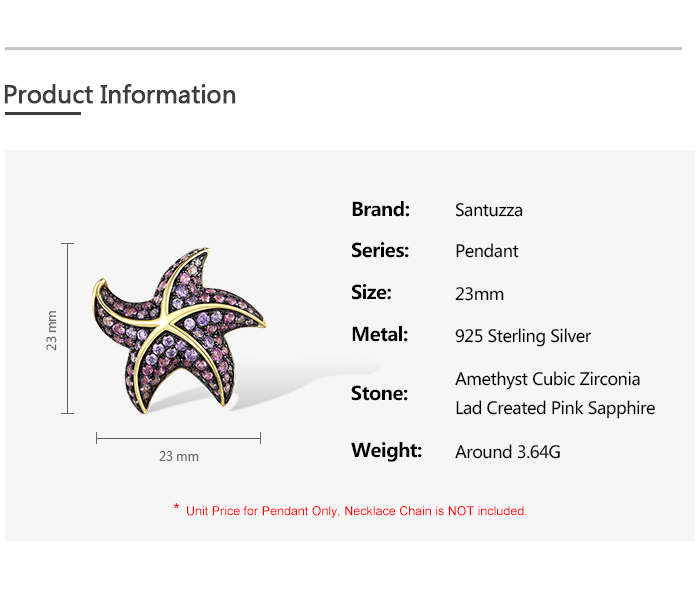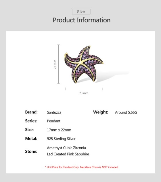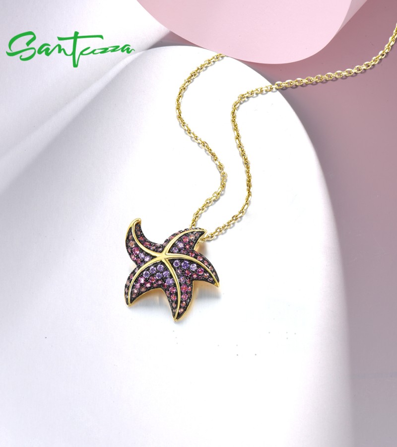 SANTUZZA 925 Sterling Silver Pendant Amethyst CZ Lab Created Pink Sapphire Star Fish Fine Jewelry
