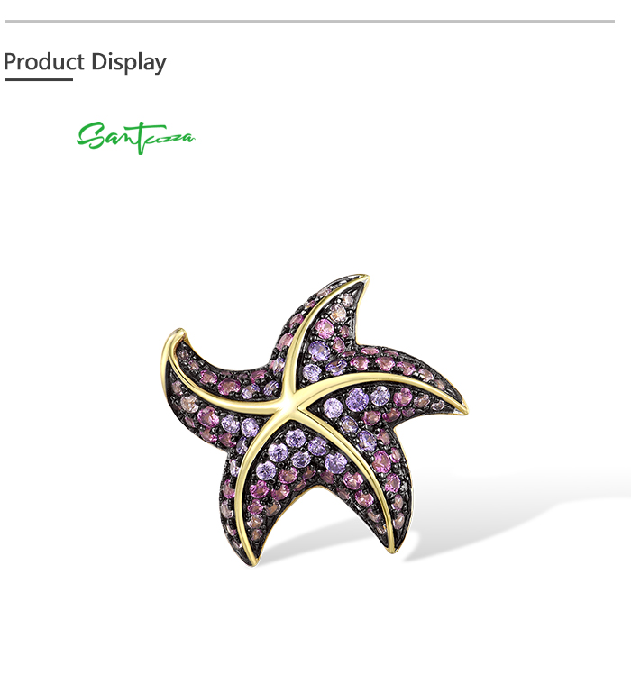 SANTUZZA 925 Sterling Silver Rings Amethyst CZ Pink Stones Star Fish Ring Ocean Fine Jewelry - US 6