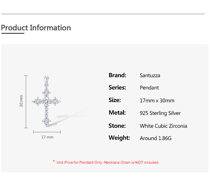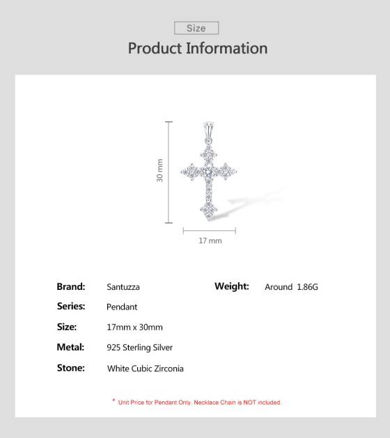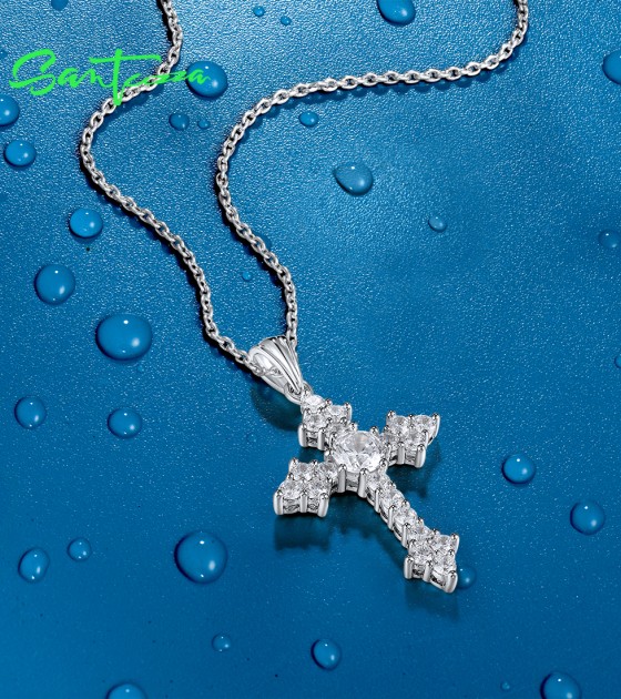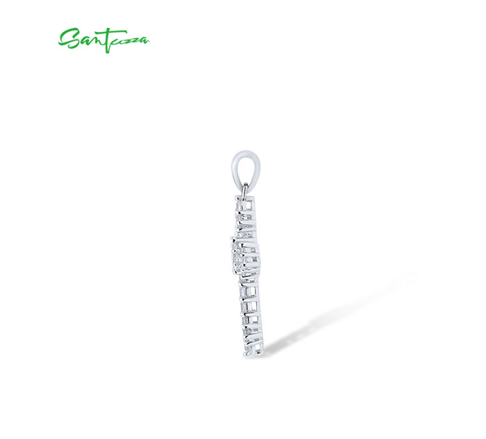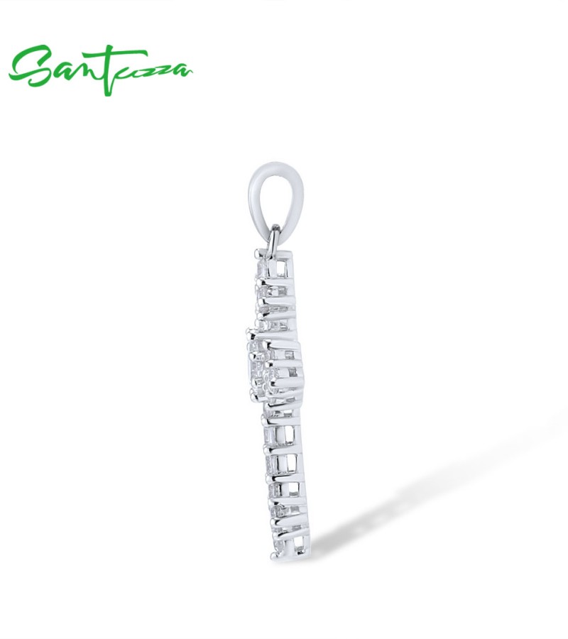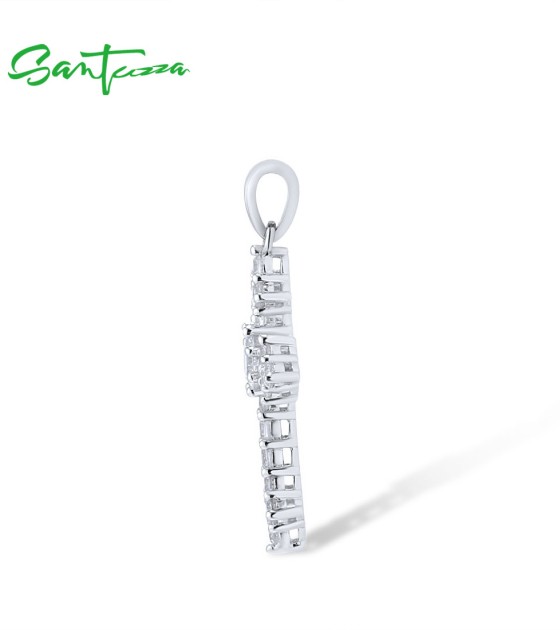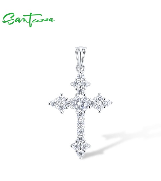SANTUZZA 925 Sterling Silver Pendant White Cubic Zirconia Cross Pendant Jewelry