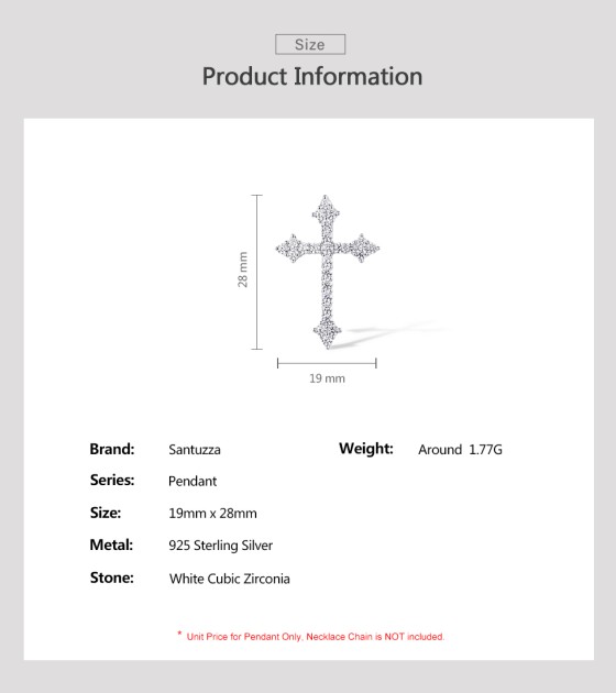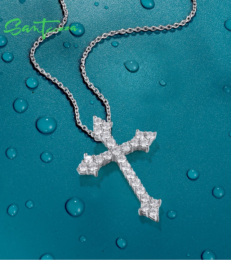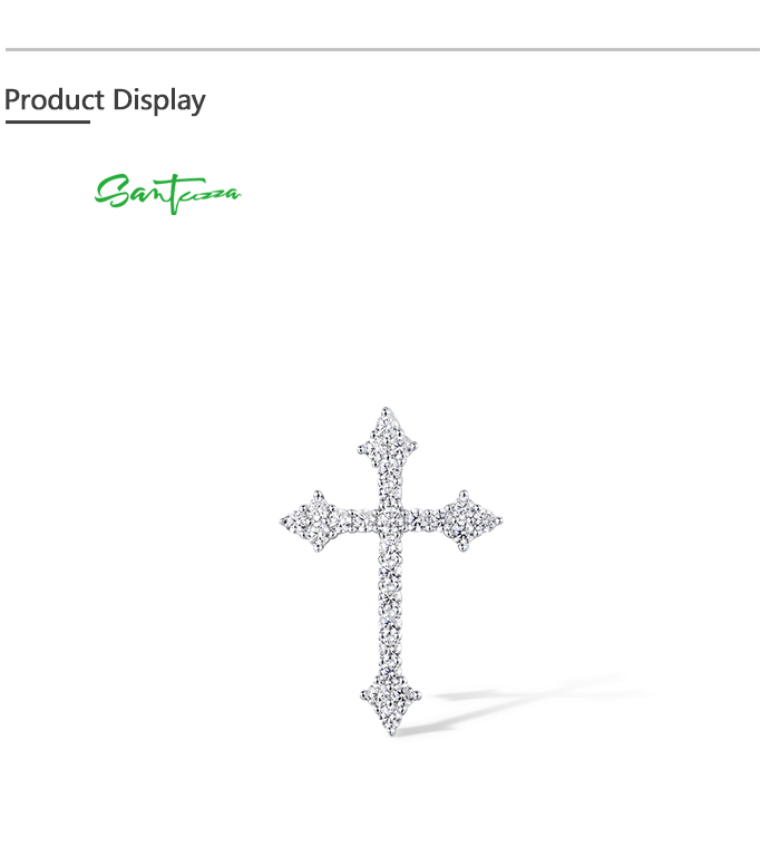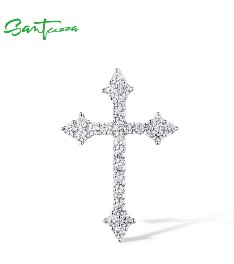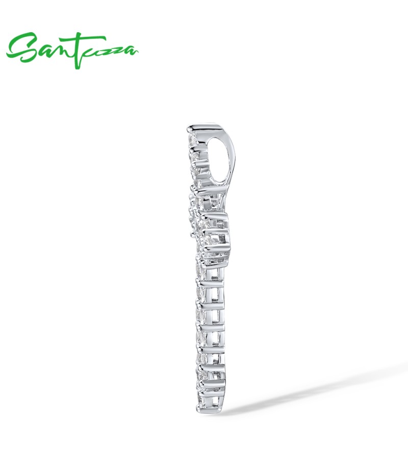 SANTUZZA 925 Sterling Silver Pendant White Cubic Zirconia Cross Pendant Jewelry