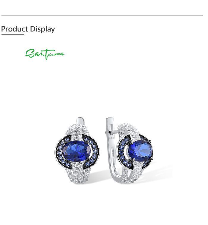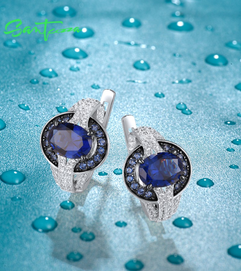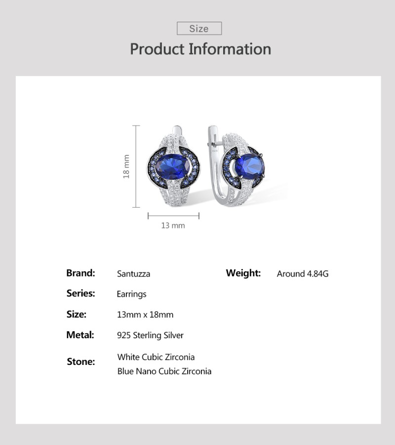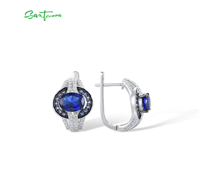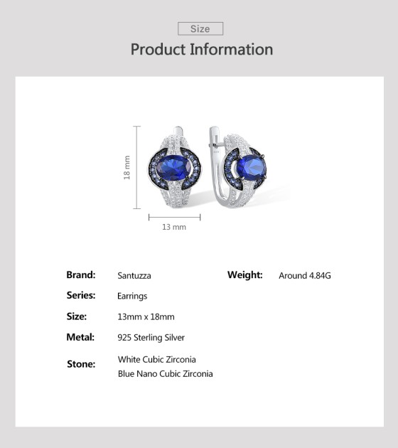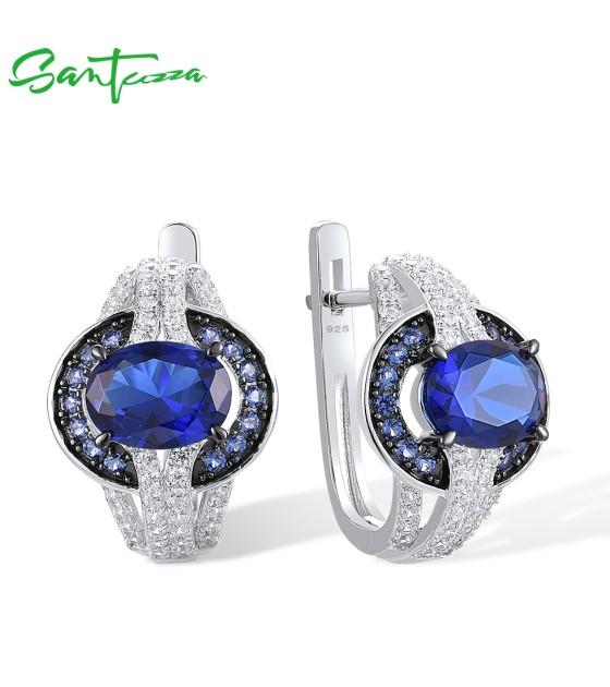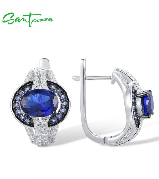 SANTUZZA 925 Sterling Silver Earrings Blue White Cubic Zirconia Earrings Jewelry