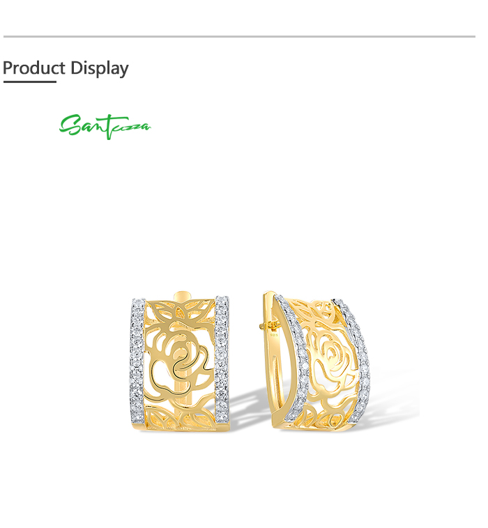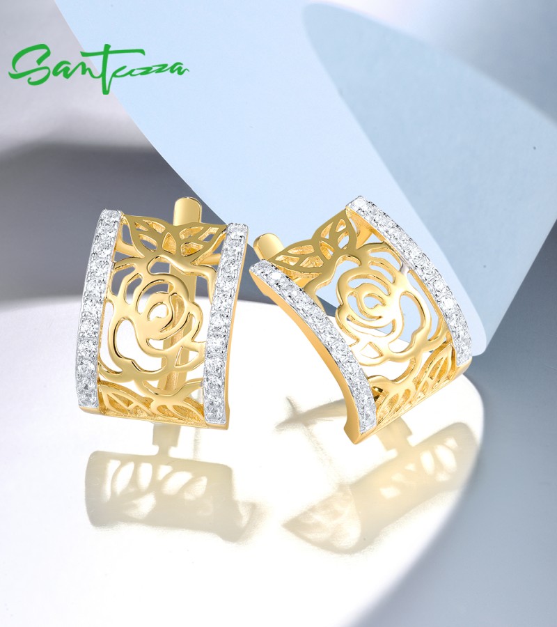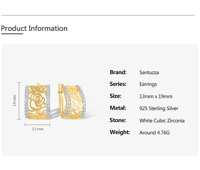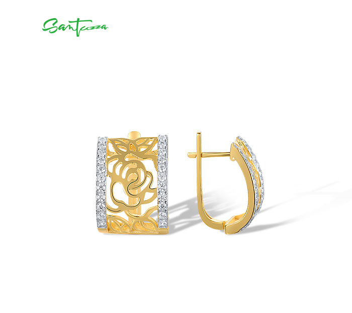 SANTUZZA 925 Sterling Silver Earrings White Cubic Zirconia Rose Flower Jewelry
