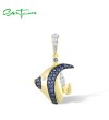 SANTUZZA 925 Sterling Silver Pendant Blue White Cubic Zirconia Fish Pendant Fine Jewelry