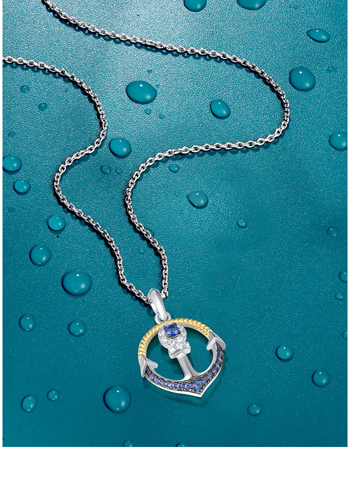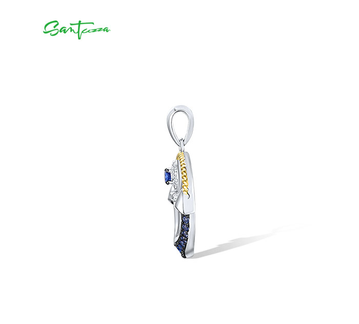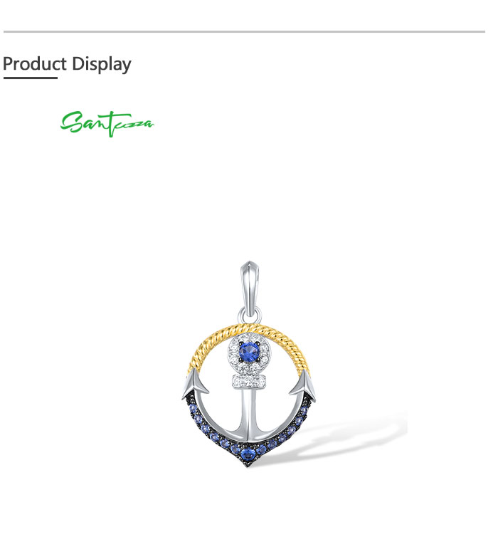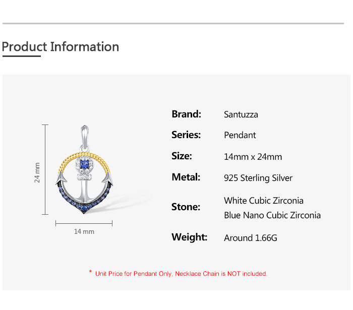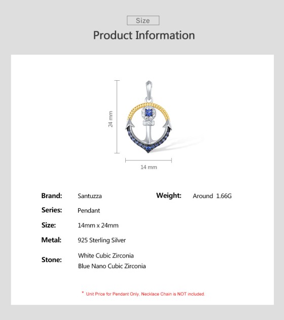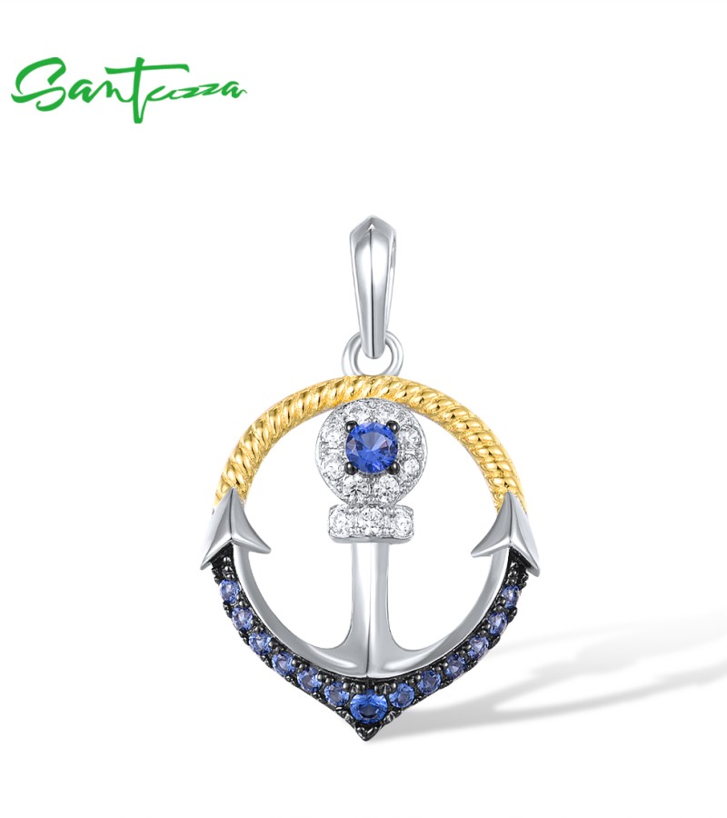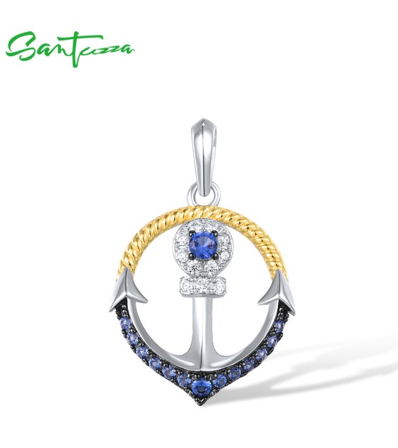 SANTUZZA 925 Sterling Silver Pendant Blue Nano Cubic Zirconia Anchor Fine Jewelry