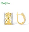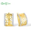 SANTUZZA 925 Sterling Silver Earrings White Cubic Zirconia Rose Flower Jewelry