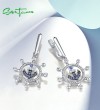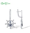 SANTUZZA 925 Sterling Silver Earrings Blue Nano White Cubic Zirconia Rudder Anchor Fine Jewelry