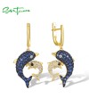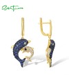 SANTUZZA 925 Sterling Silver Dangling Earrings Blue Nano White CZ Black Spinel Dolphin Fine Jewelry