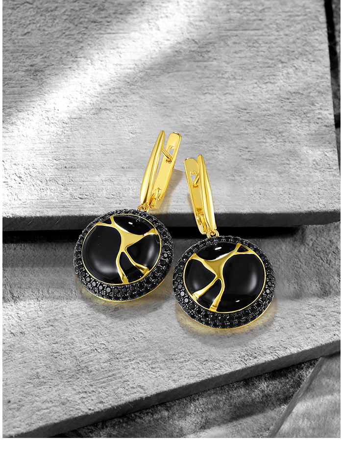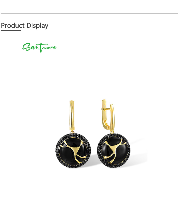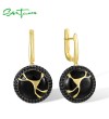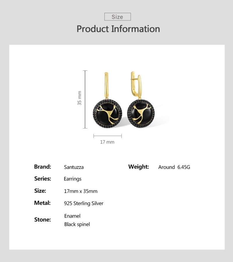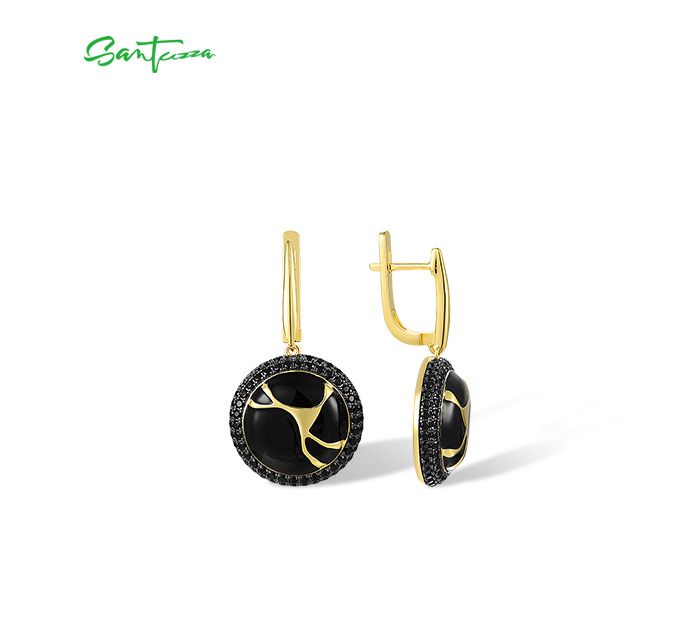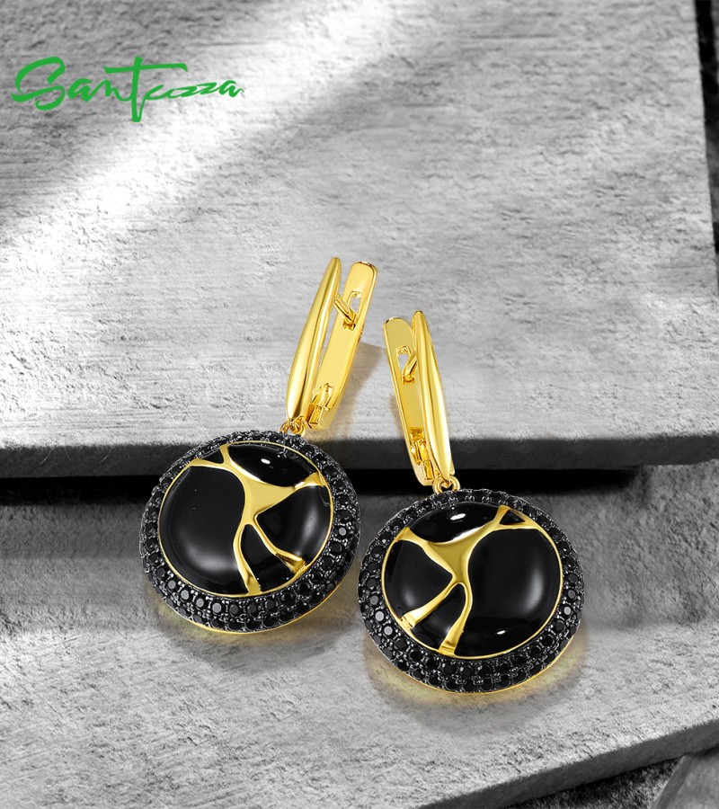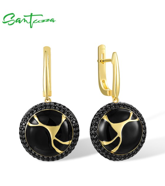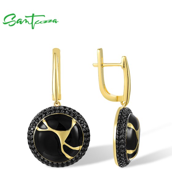 SANTUZZA 925 Silver Dangling Earrings Sterling Silver Black Spinel Yellow Plated Oriental Enamel Jewelry