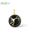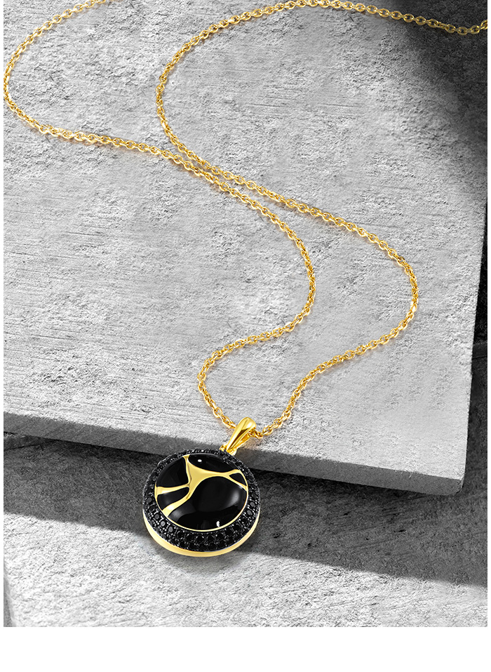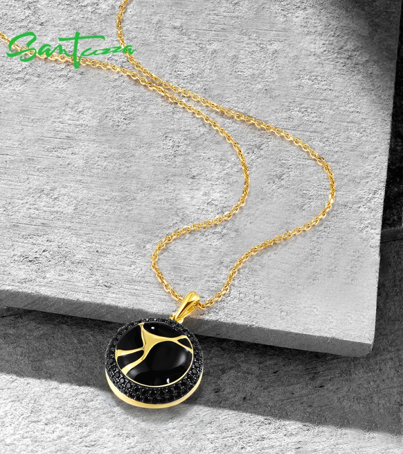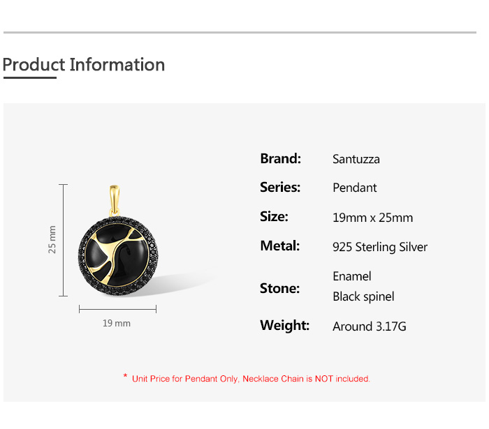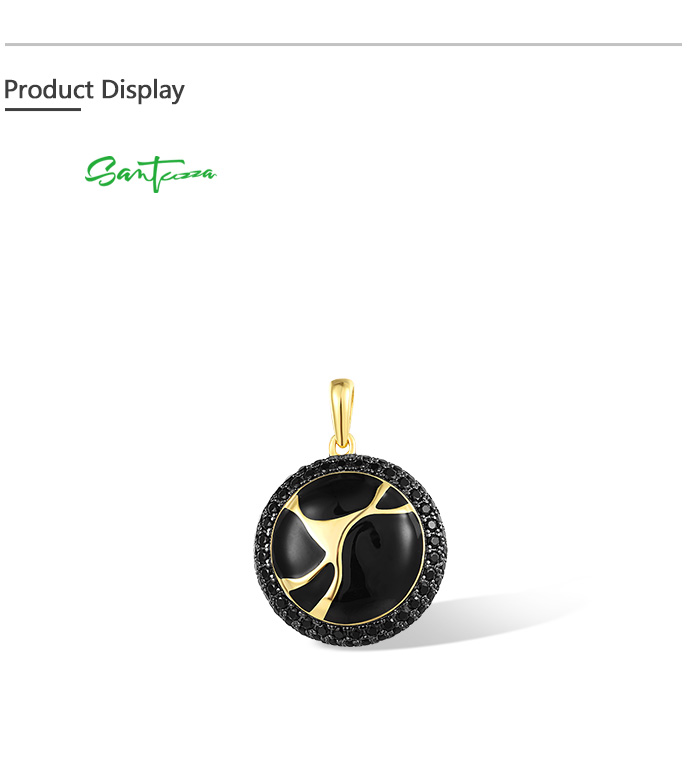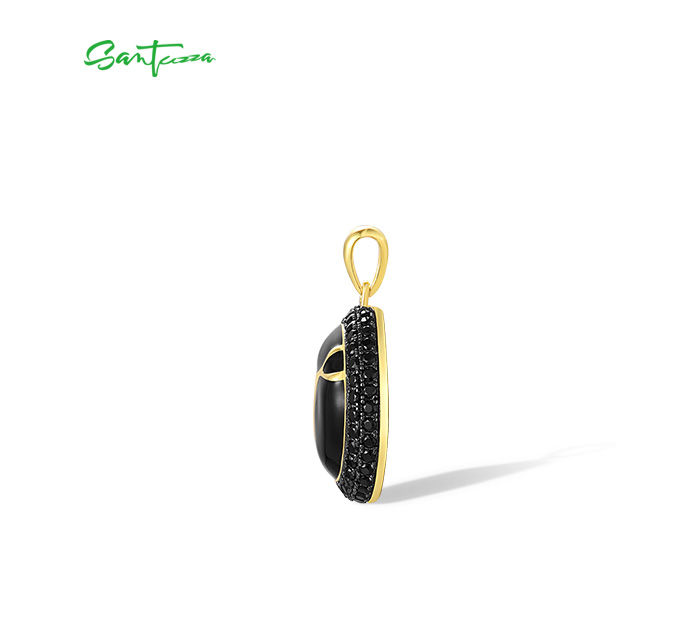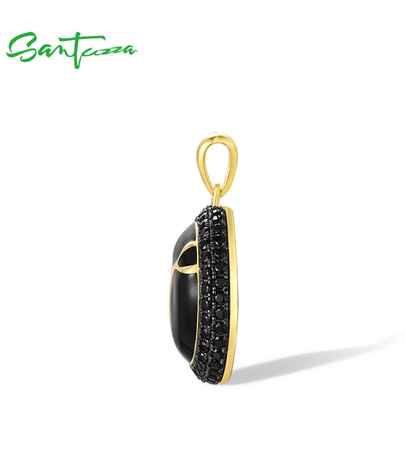 SANTUZZA 925 Sterling Silver Oriental Pendant Black Spinel Antique Look Enamel Jewelry