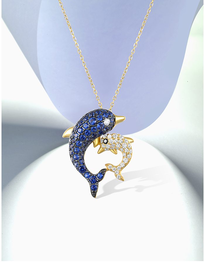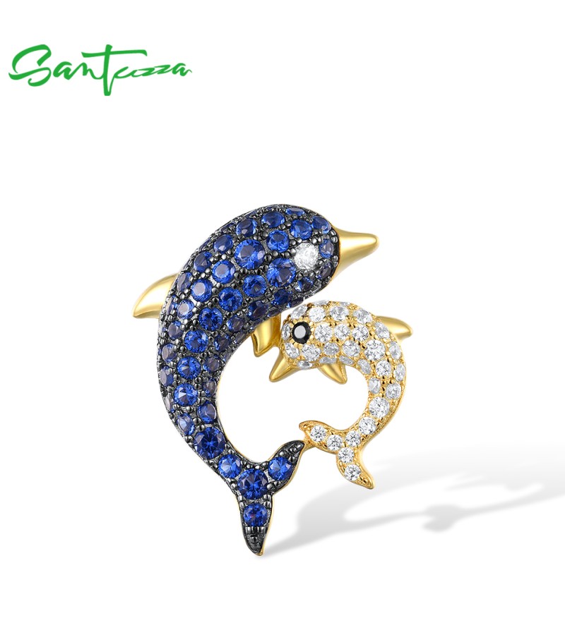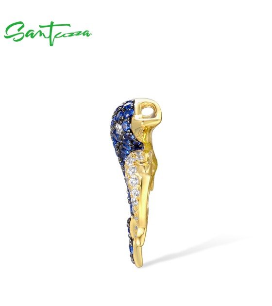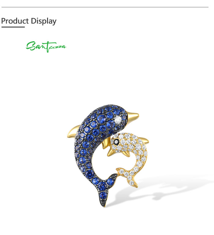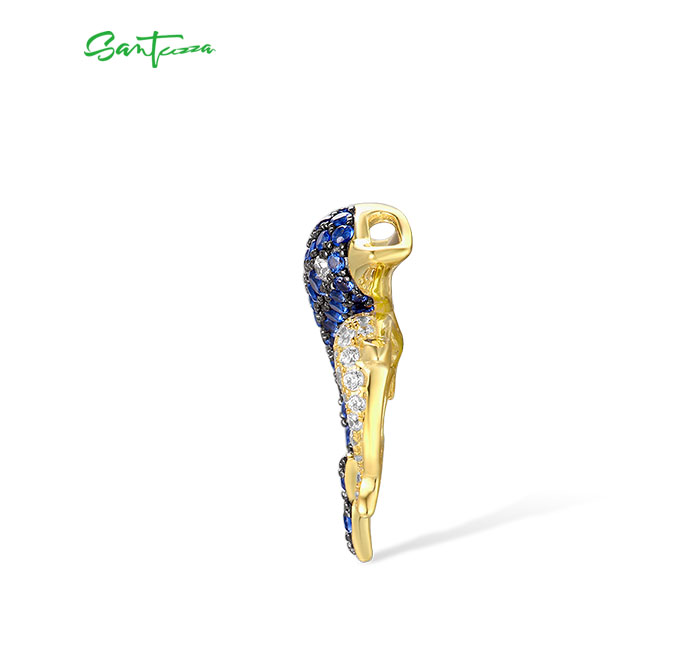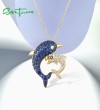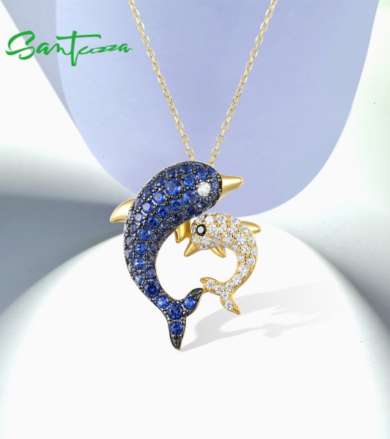 SANTUZZA 925 Sterling Silver Pendant Black Spinel Blue White CZ Dolphin Pendant Fine Jewelry