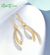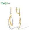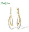 SANTUZZA 925 Sterling Silver Dangling Earrings White CZ Fine Jewelry
