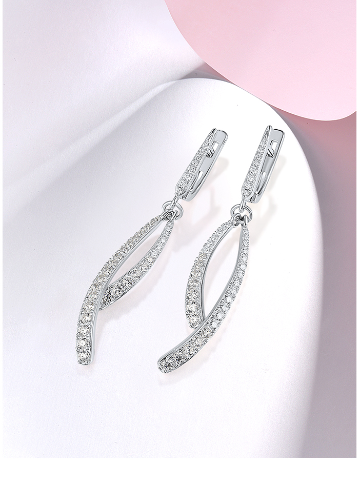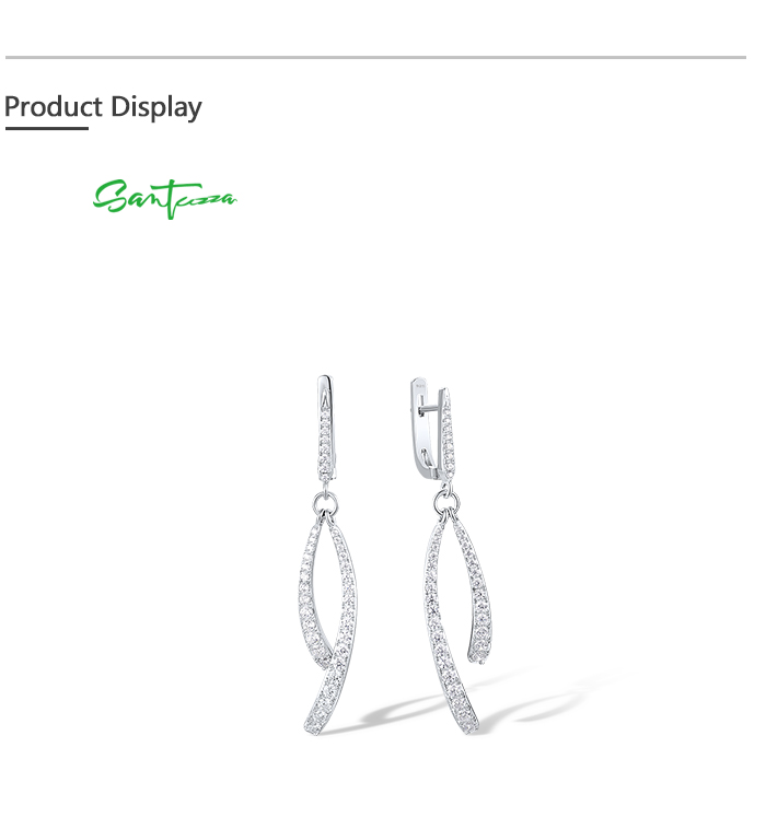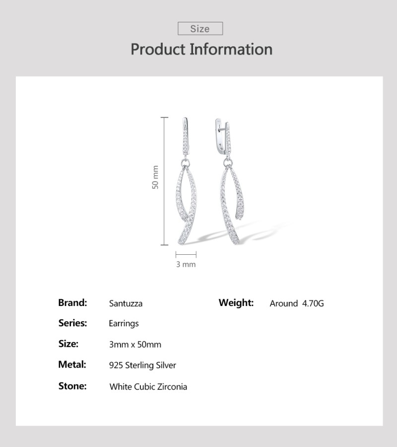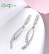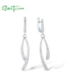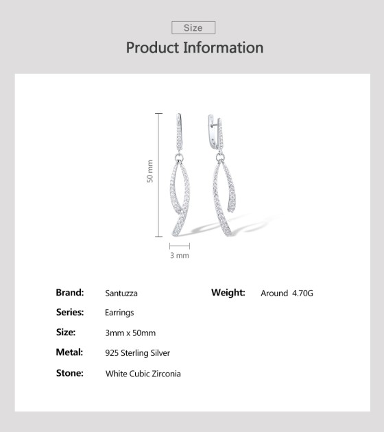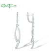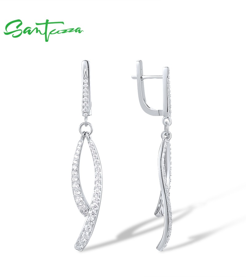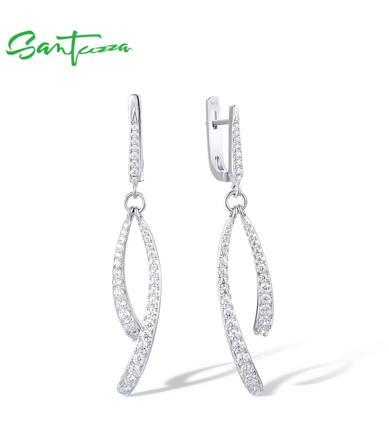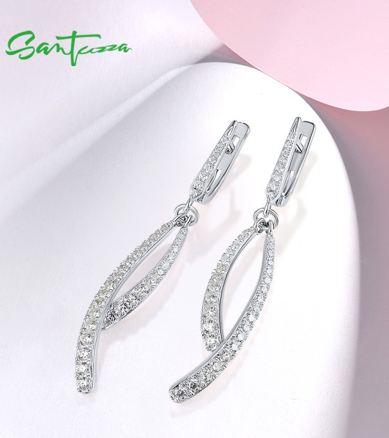 SANTUZZA 925 Sterling Silver Long Earrings White Cubic Zirconia Fine Jewelry