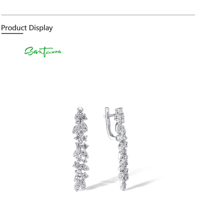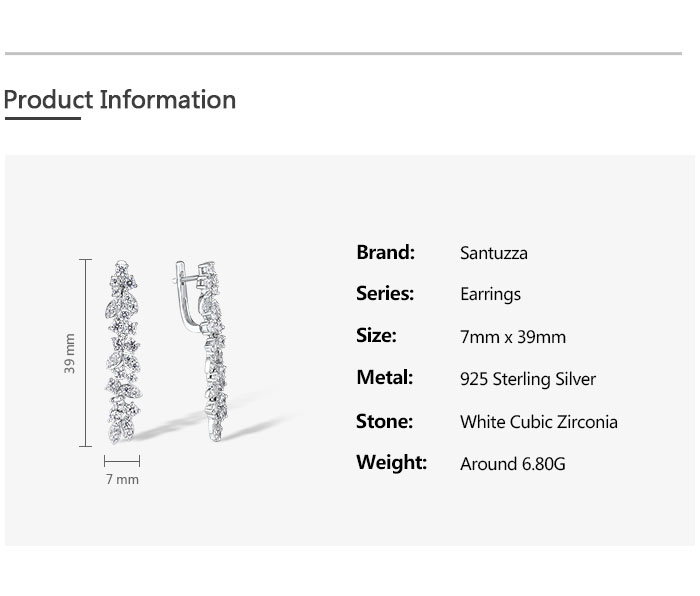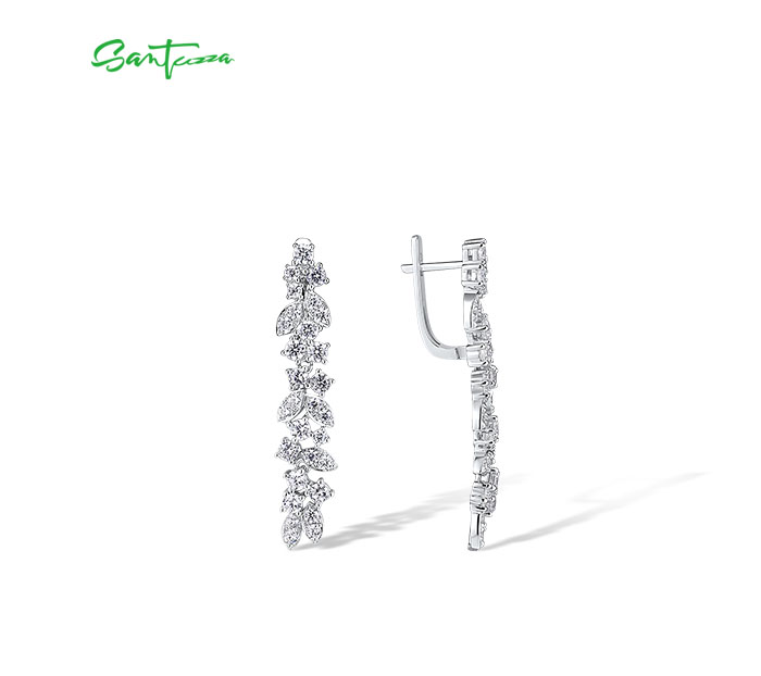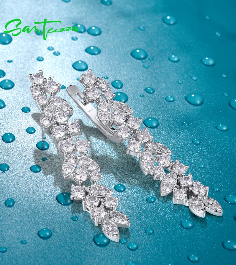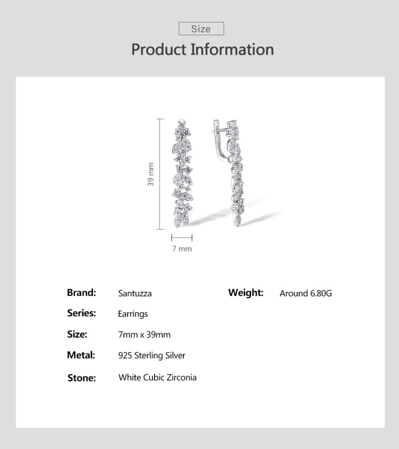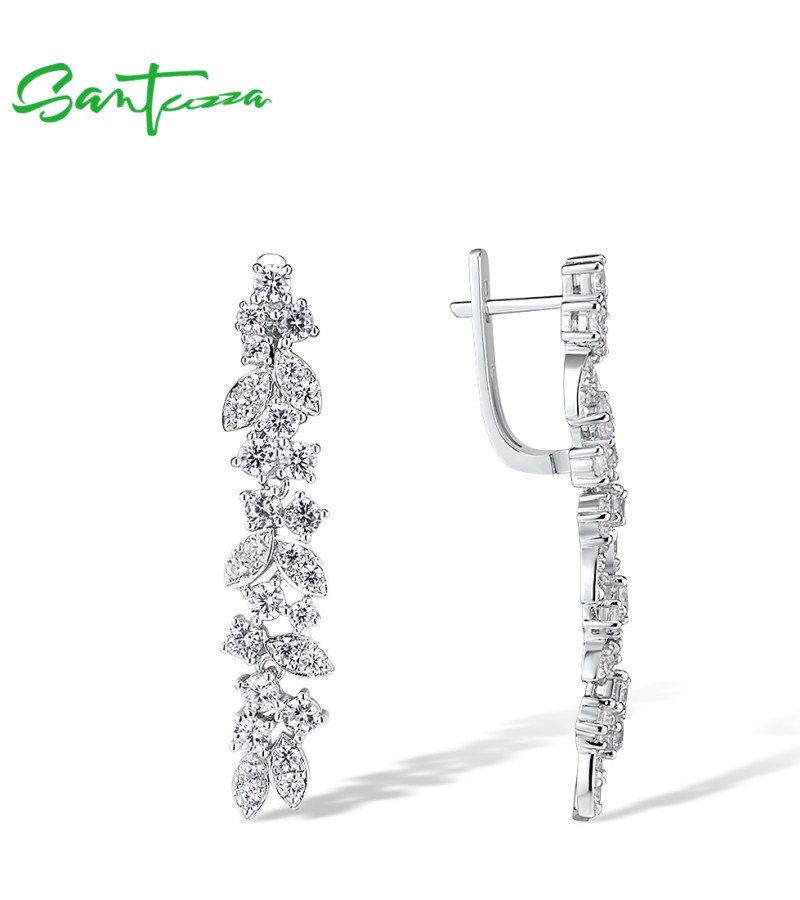 SANTUZZA 925 Sterling Silver Cluster Drop Earrings White Cubic Zirconia Fine Jewelry