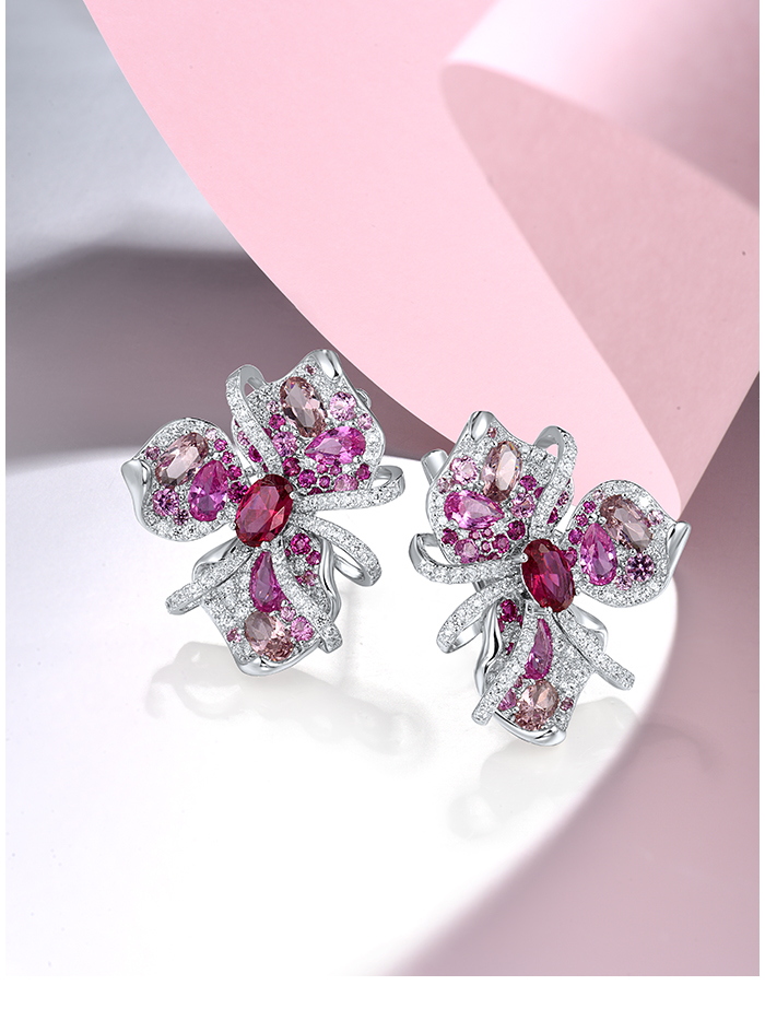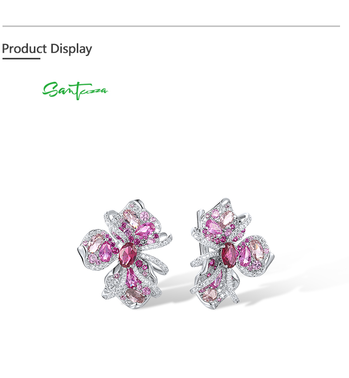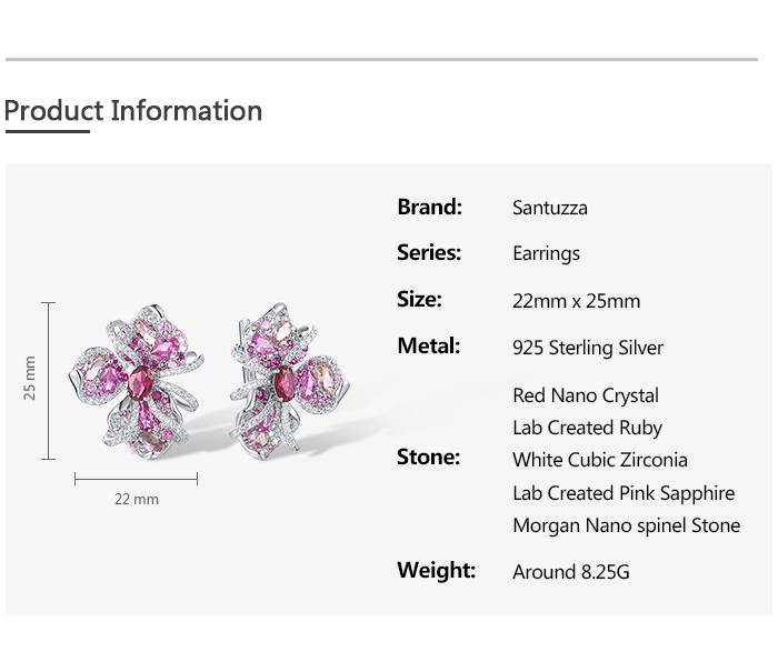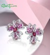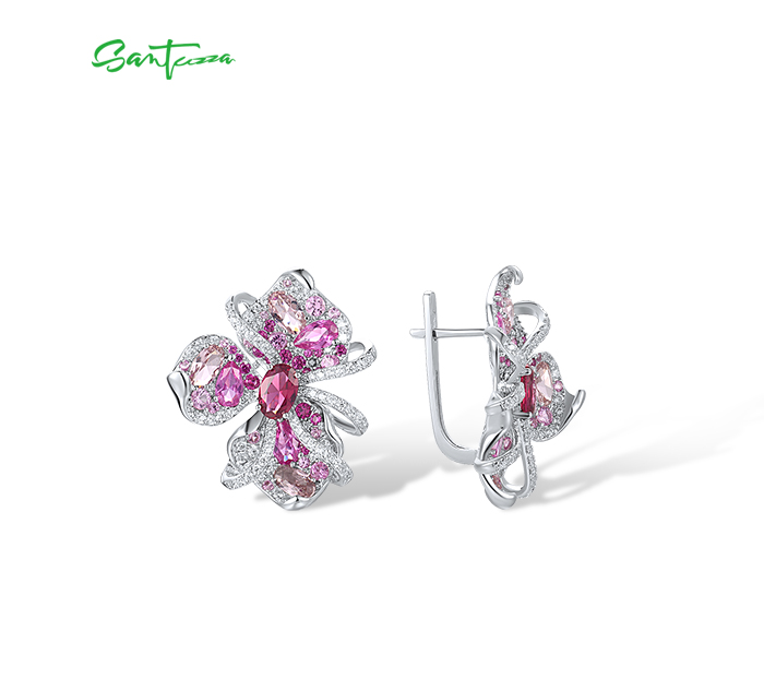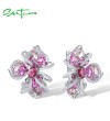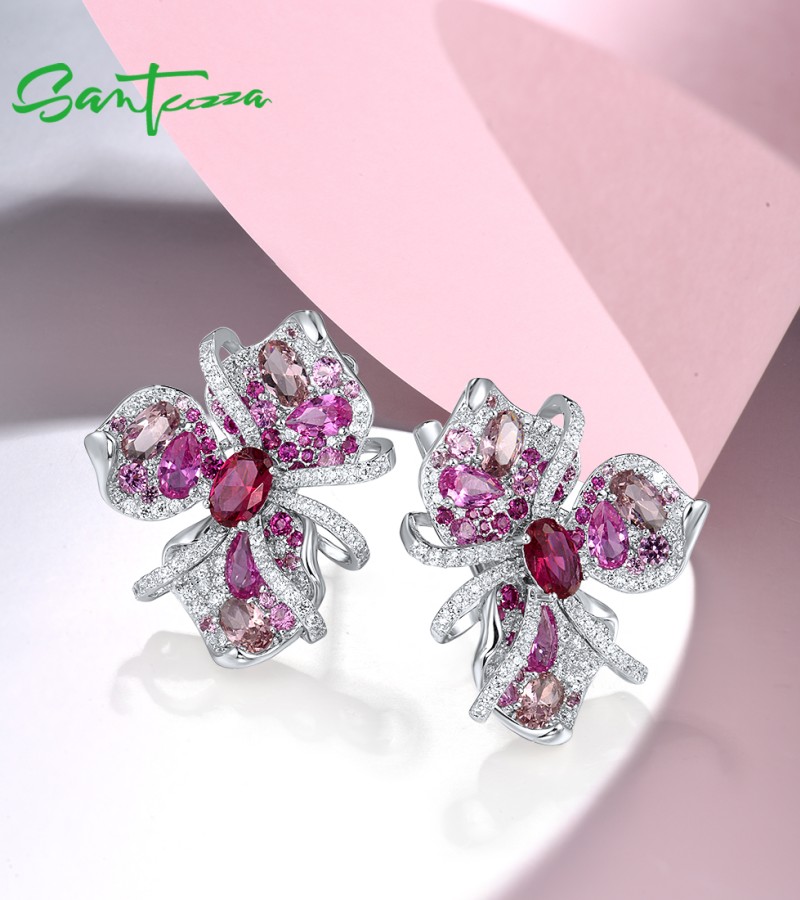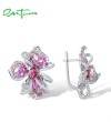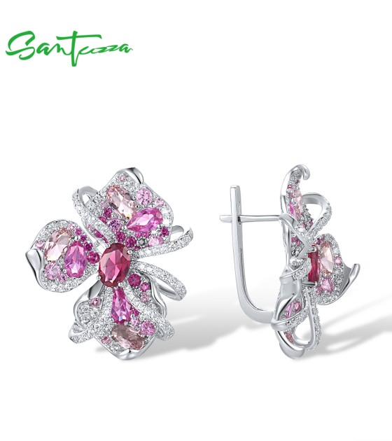 SANTUZZA 925 Sterling Silver Earrings Created Ruby Pink Sapphire Lily Flower Jewelry