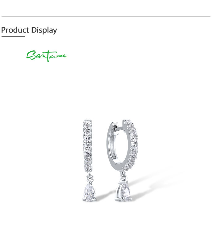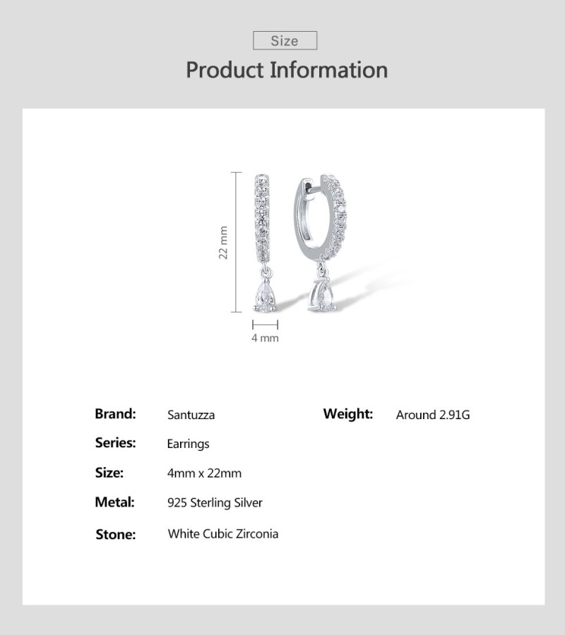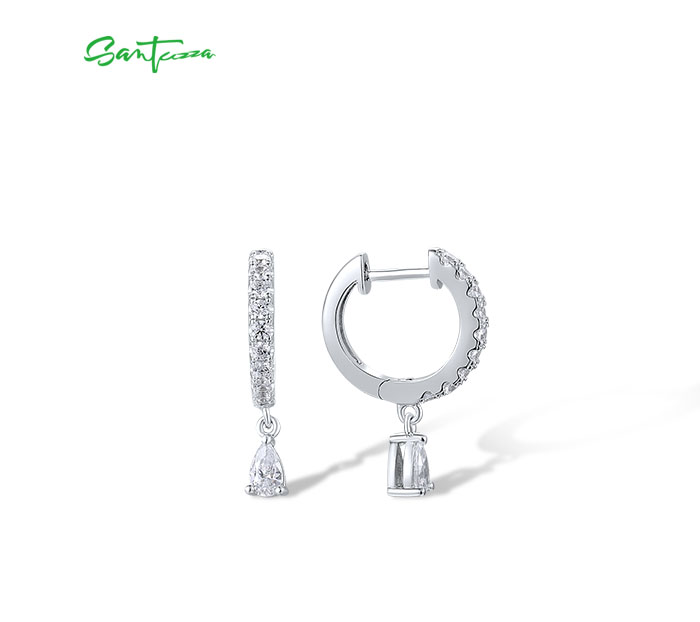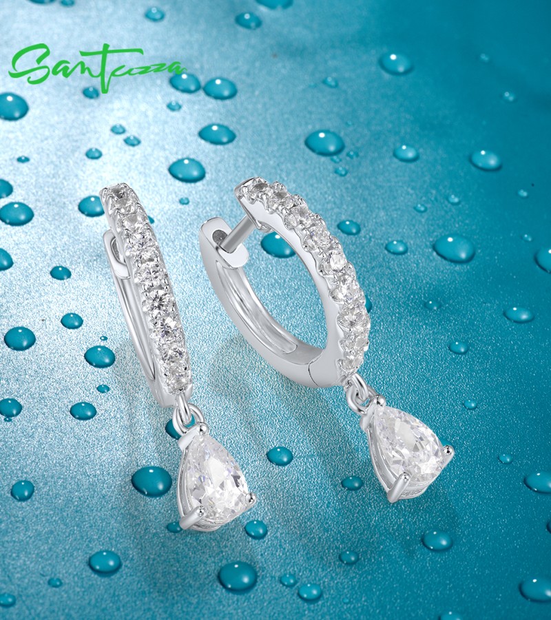 SANTUZZA 925 Sterling Silver Drop Earrings White Cubic Zirconia Fine Jewelry