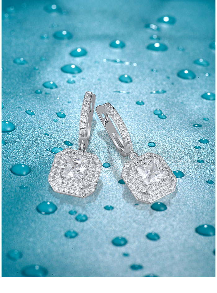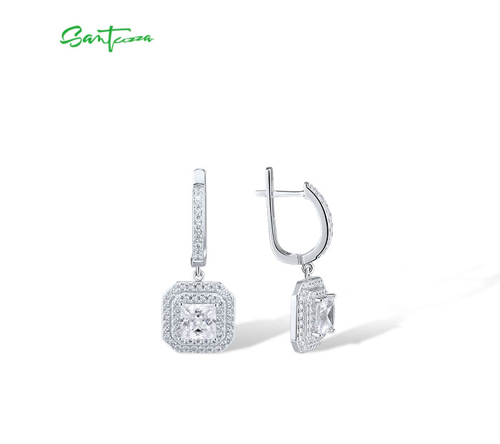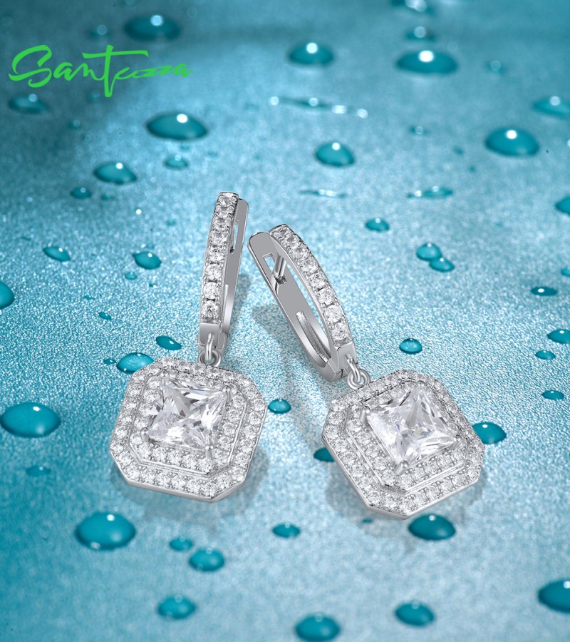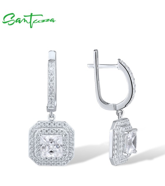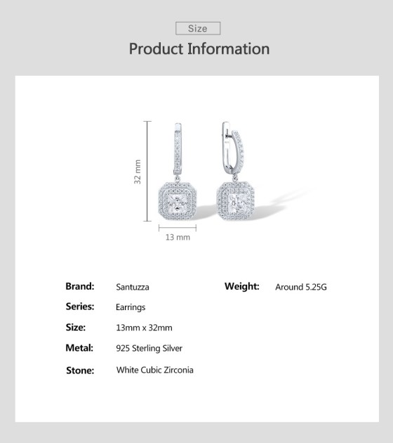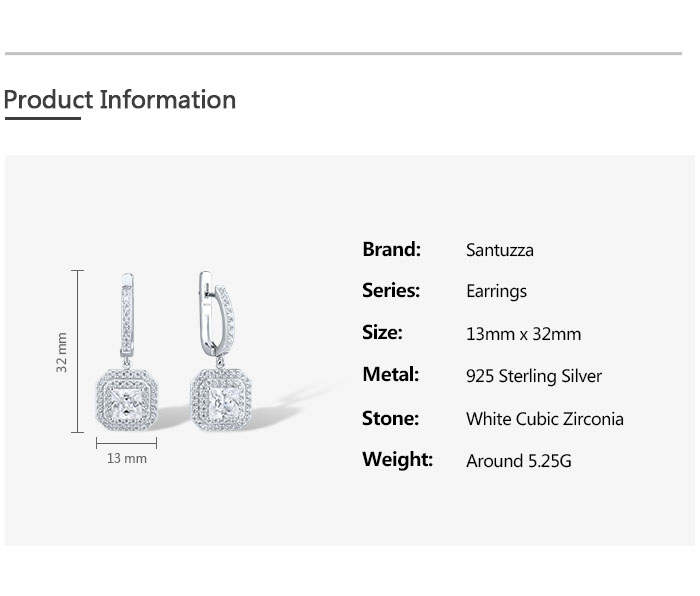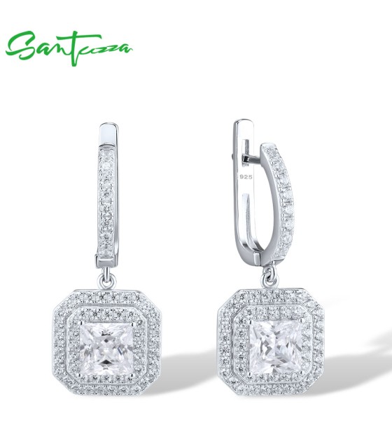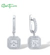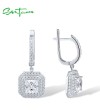 SANTUZZA 925 Sterling Silver Earrings White CZ Solitaire Princess Cut Dangling Fine Jewelry