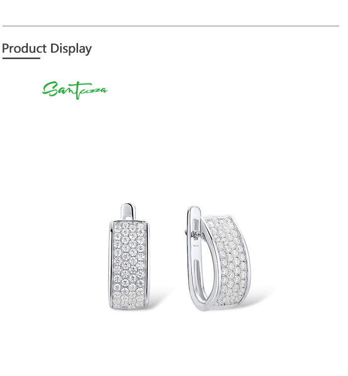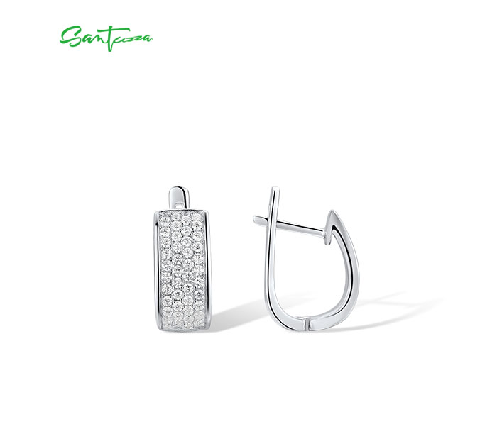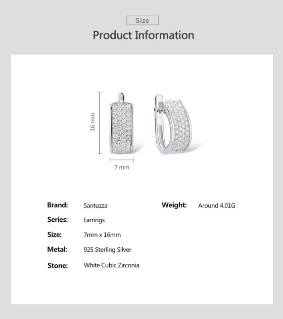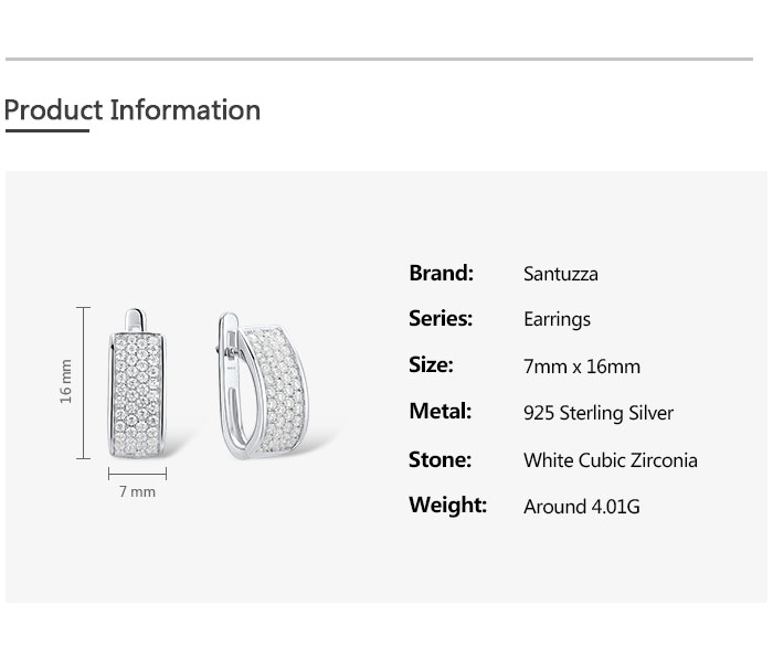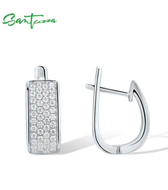SANTUZZA 925 Sterling Silver Earrings White Cubic Zirconia Fine Jewelry