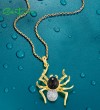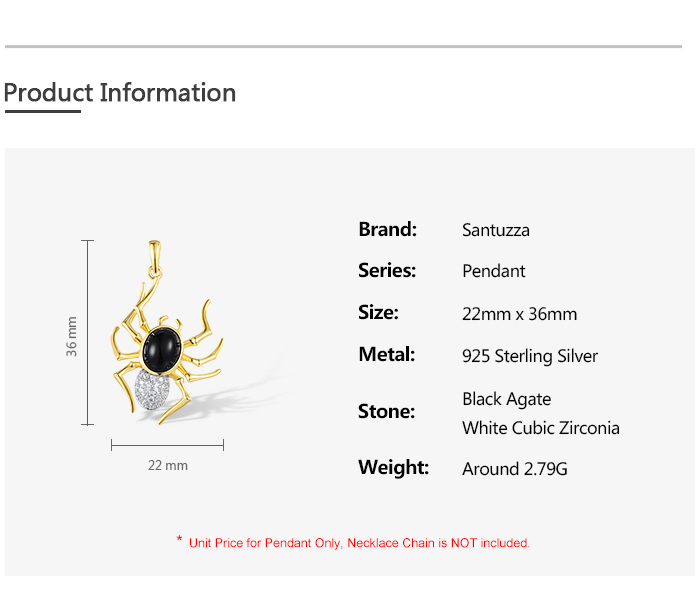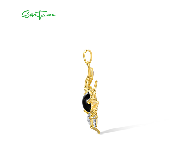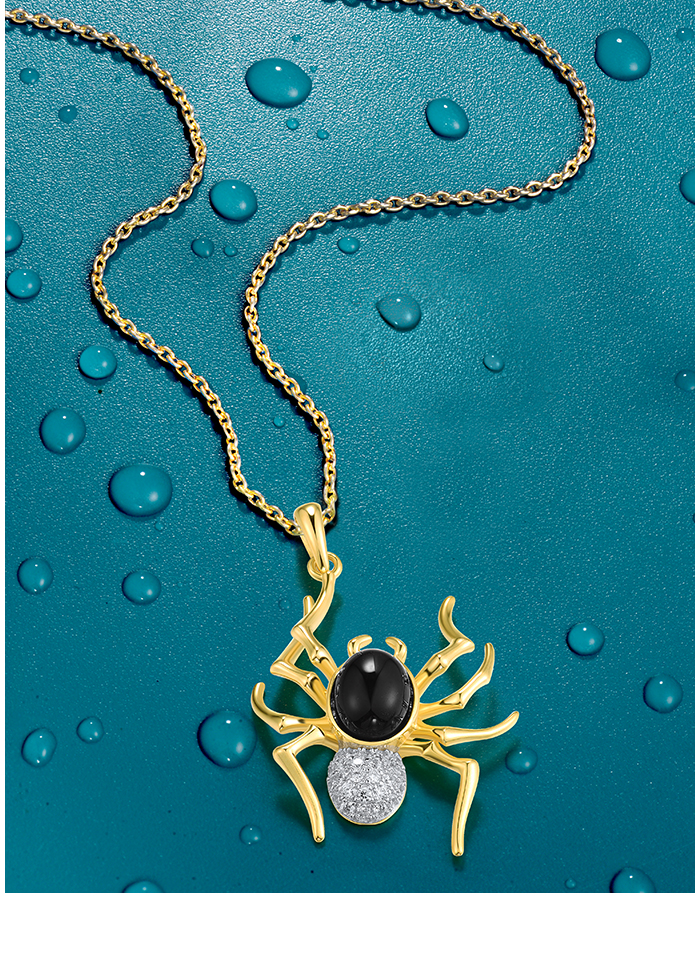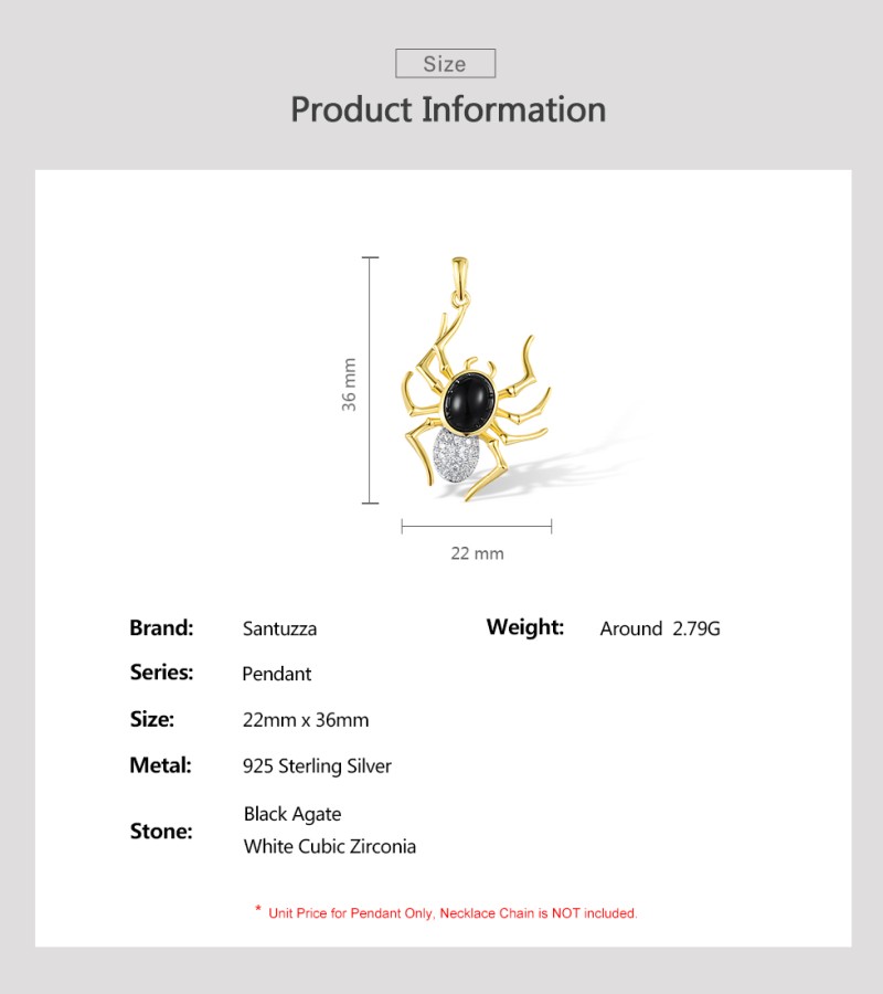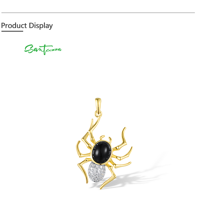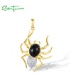 SANTUZZA 925 Sterling Silver Pendant Black Agate White CZ Yellow Plated Spider Animal Fine Jewelry