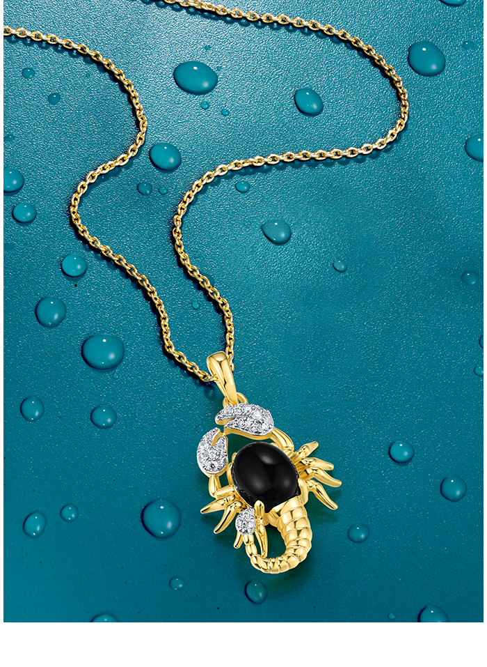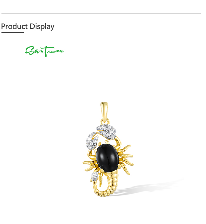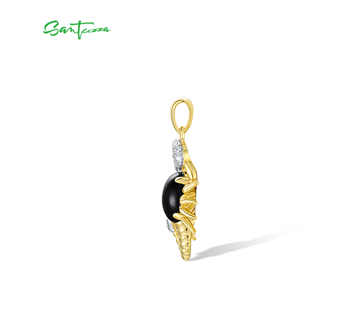 SANTUZZA 925 Sterling Silver Pendant White CZ Black Agate Gold Plating Crab Animal Fine Jewelry