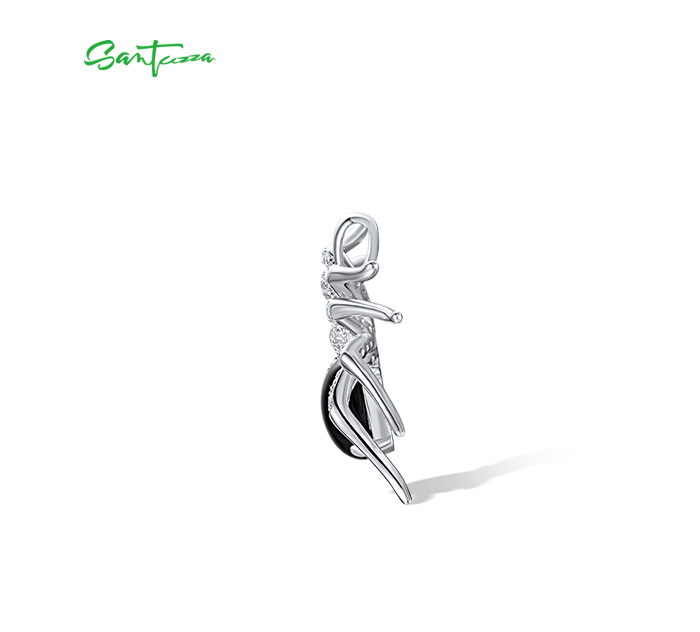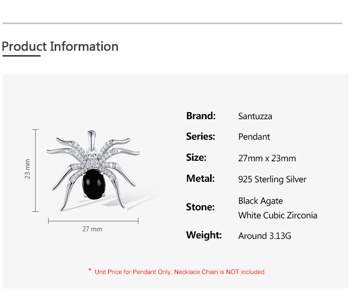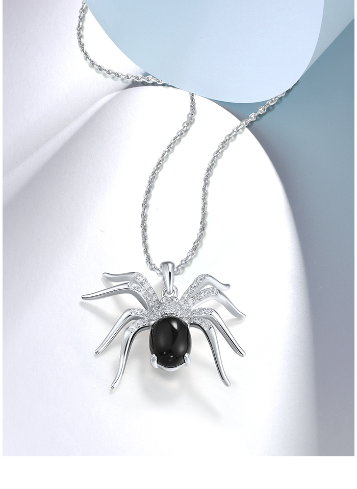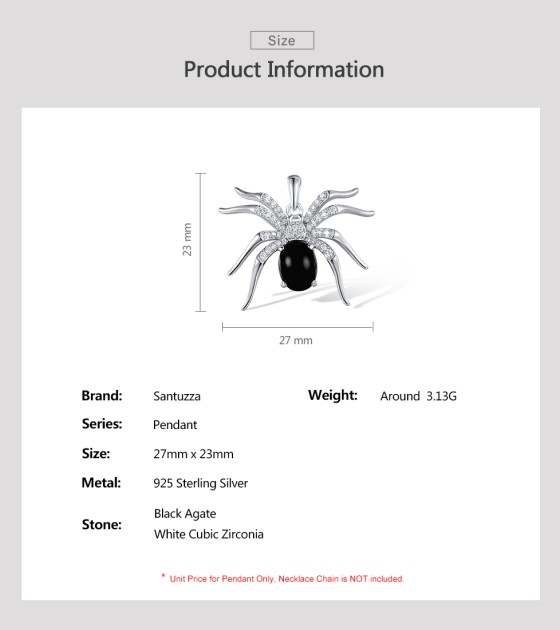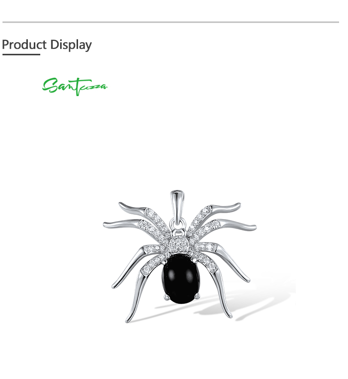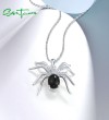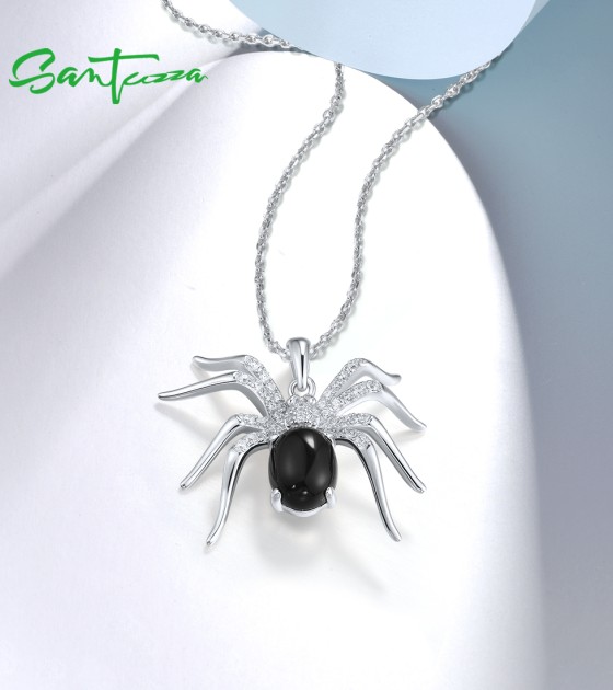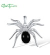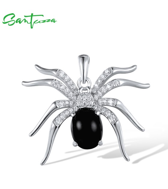 SANTUZZA 925 Sterling Silver Pendant Black Agate White Cubic Zirconia Spider Animal Fine Jewelry