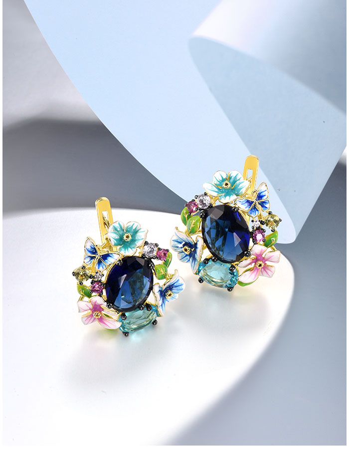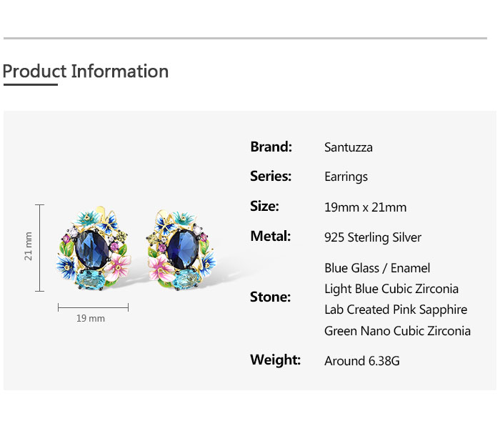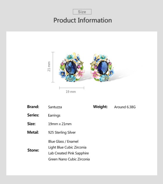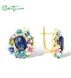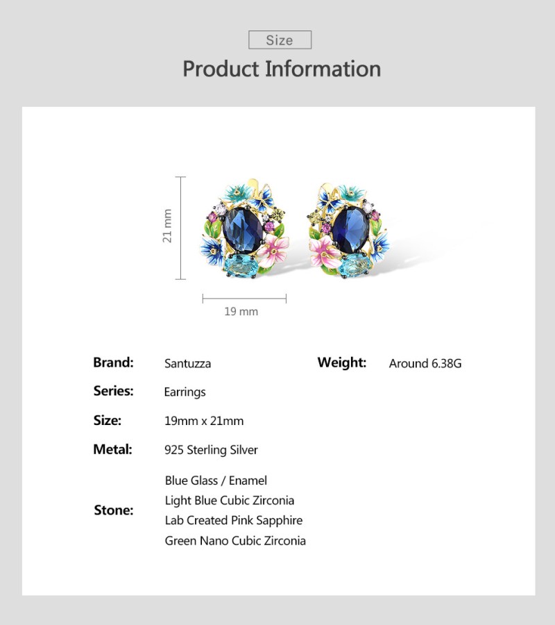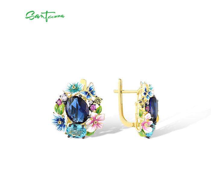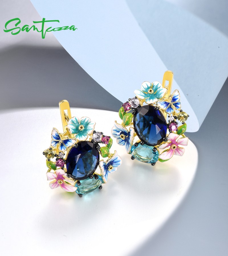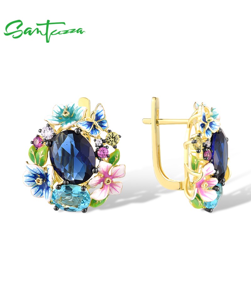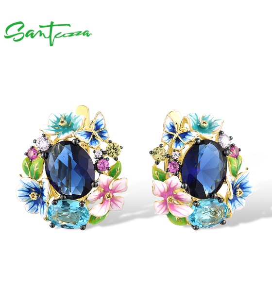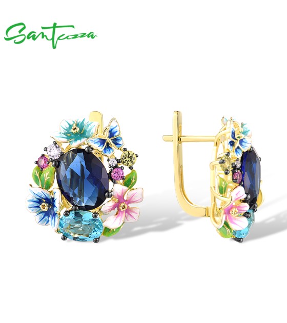 SANTUZZA 925 Sterling Silver Earrings Colorful Enamel Flower Blue Stone Enamel Fine Jewelry