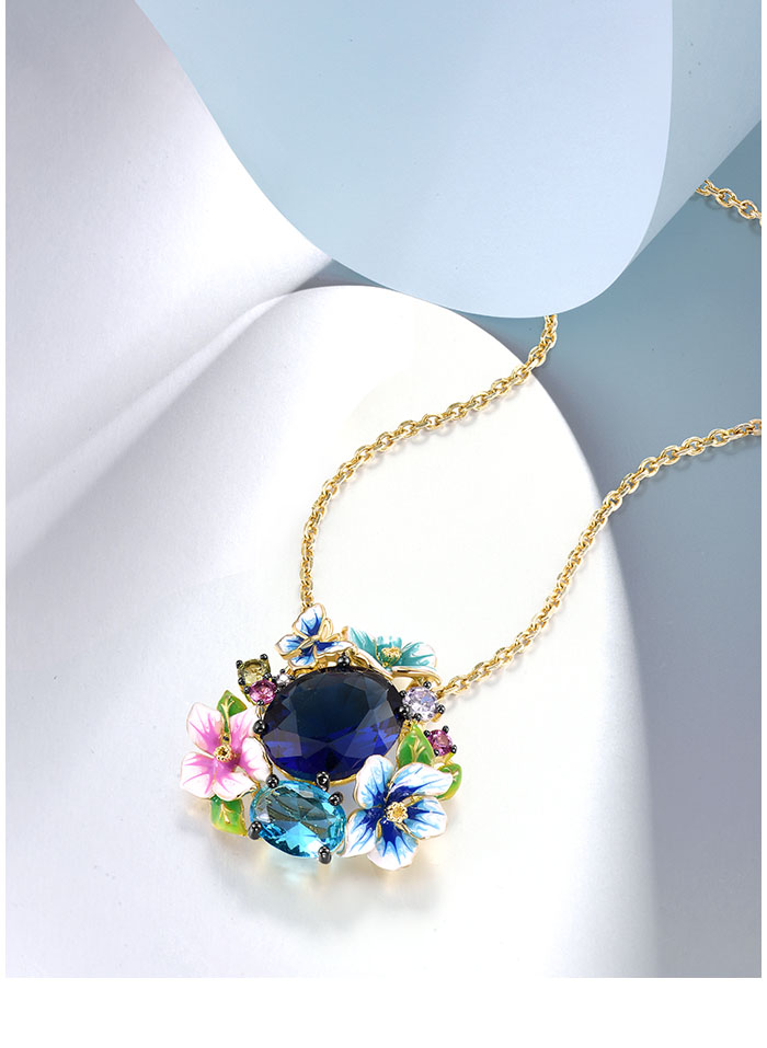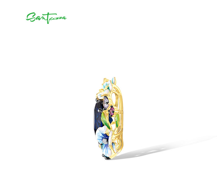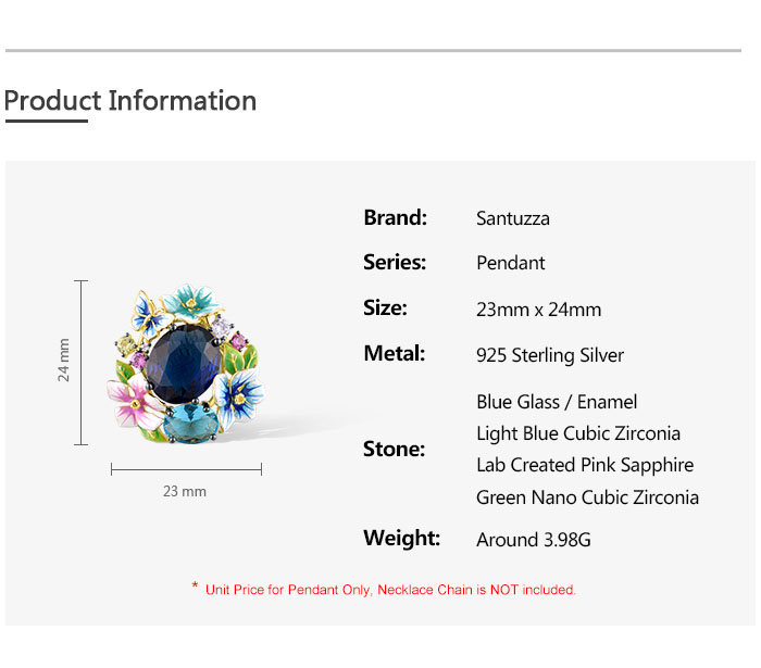 SANTUZZA 925 Sterling Silver Pendant Colorful Enamel Blue Stone Flower Fashion Fine Jewelry