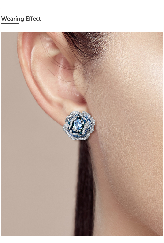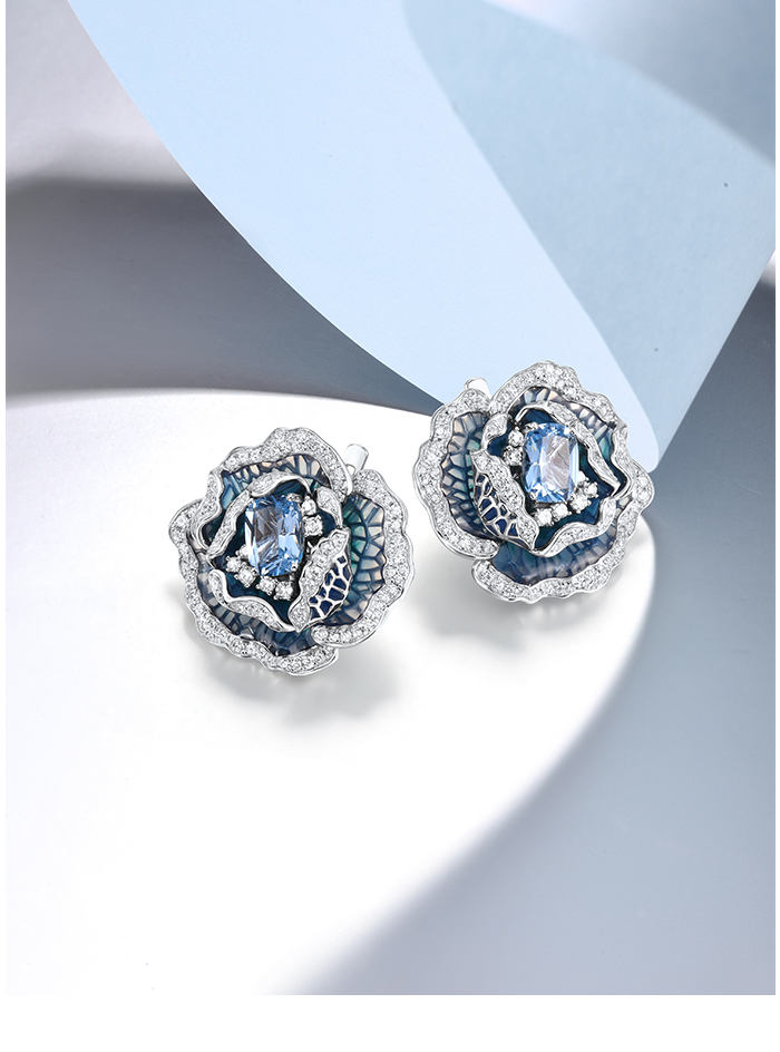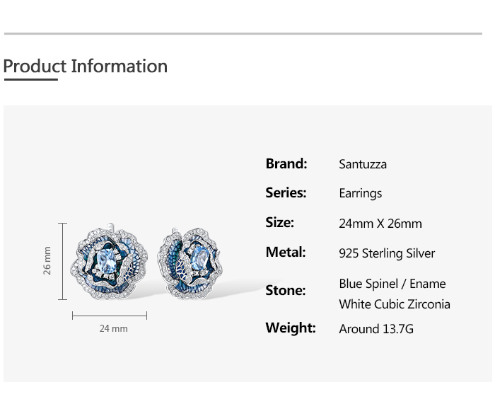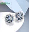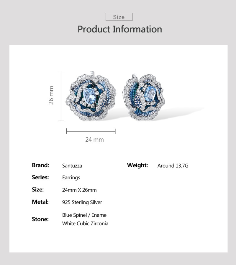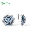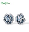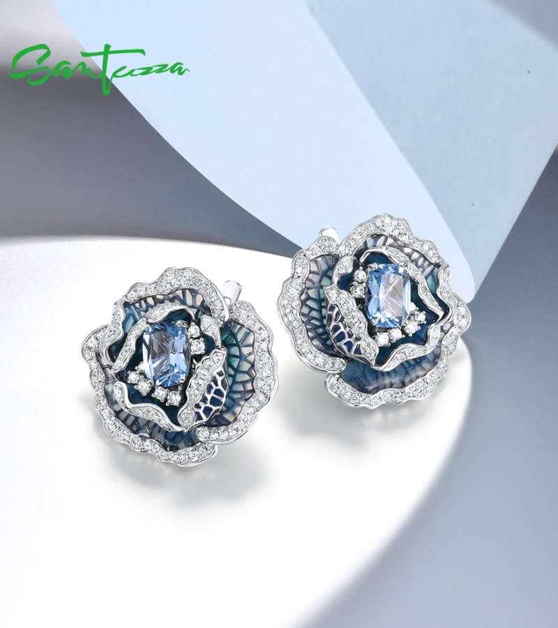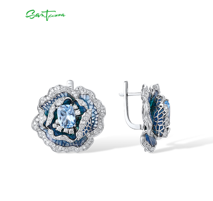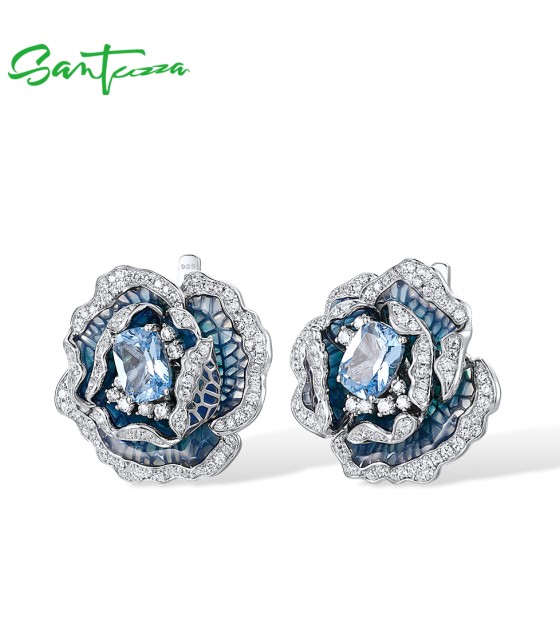 SANTUZZA 925 Sterling Silver Earrings Blue Spinel White CZ Blooming Flower Jewelry Enamel