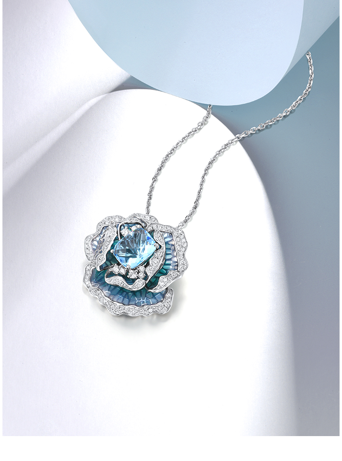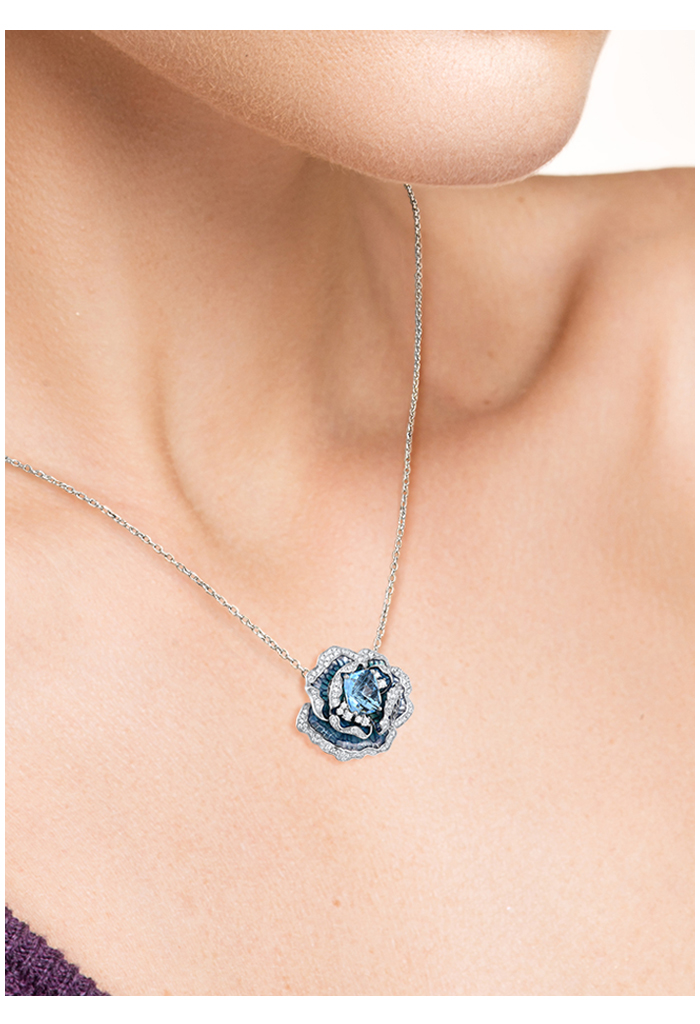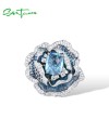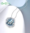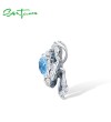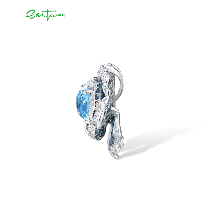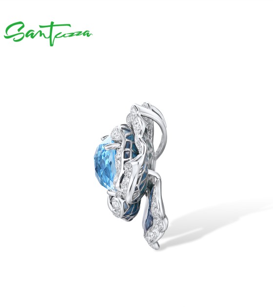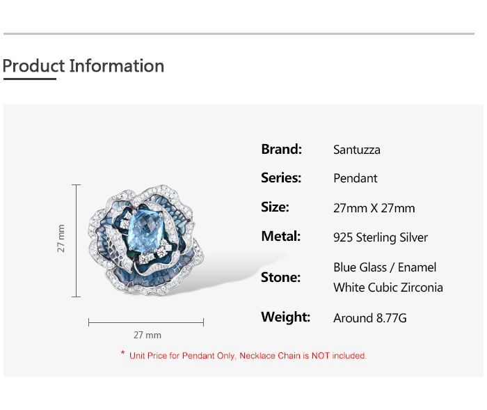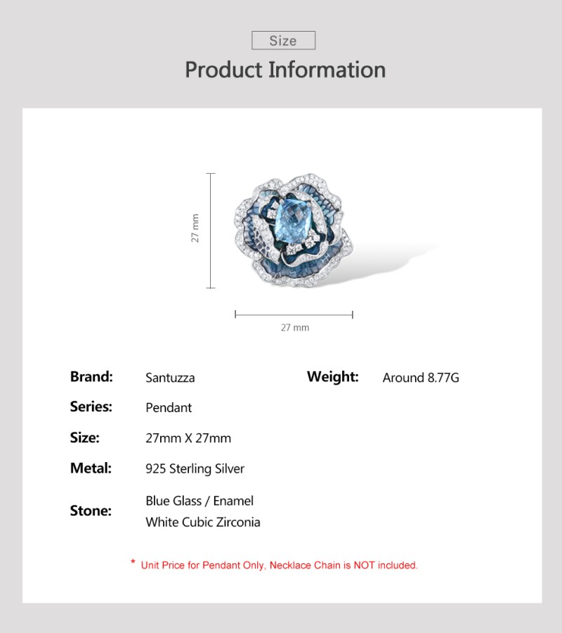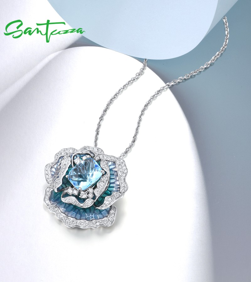 SANTUZZA 925 Sterling Silver Pendants Blue Blooming Flower Elegant Jewelry Enamel