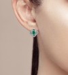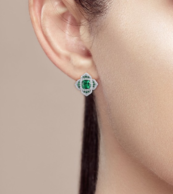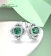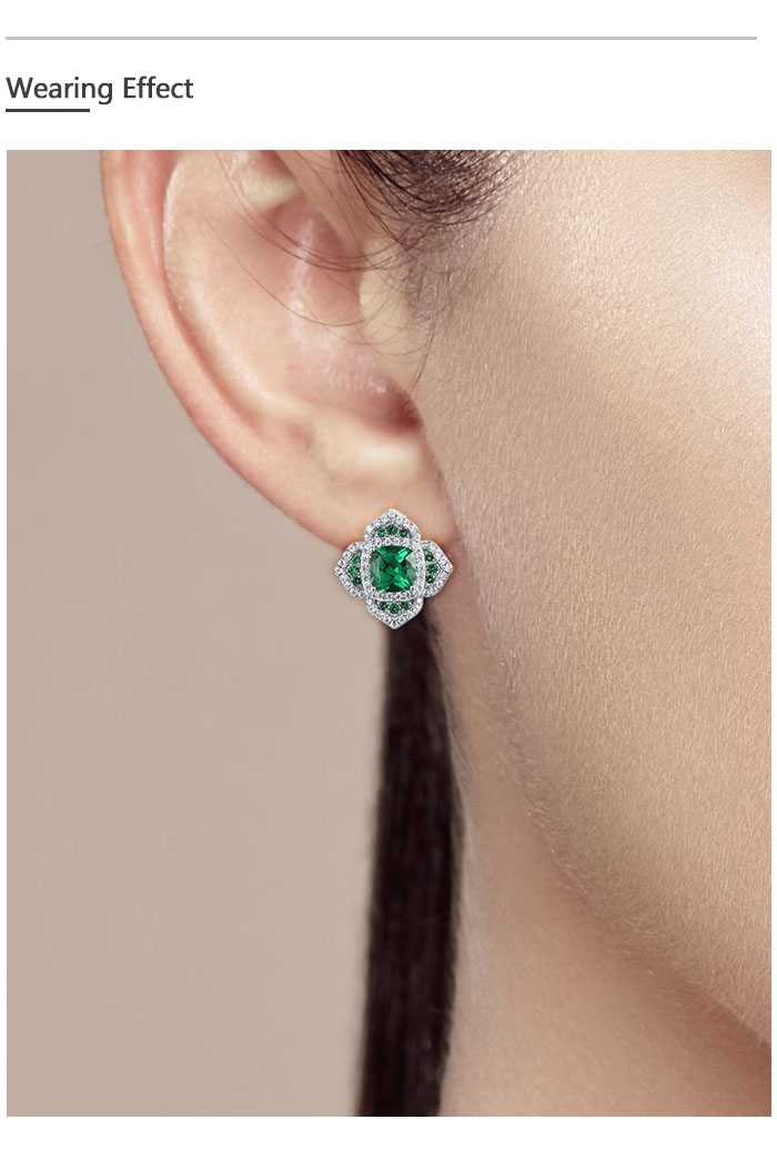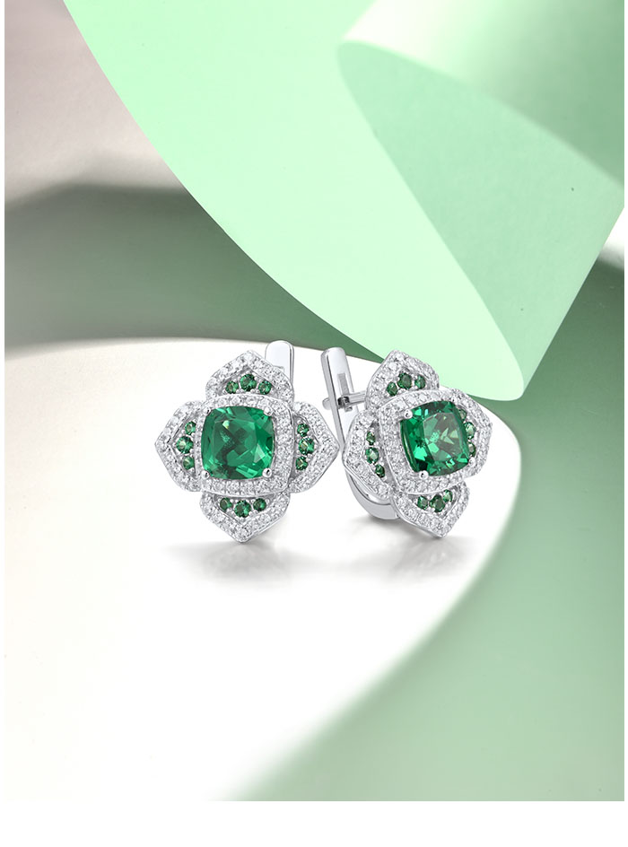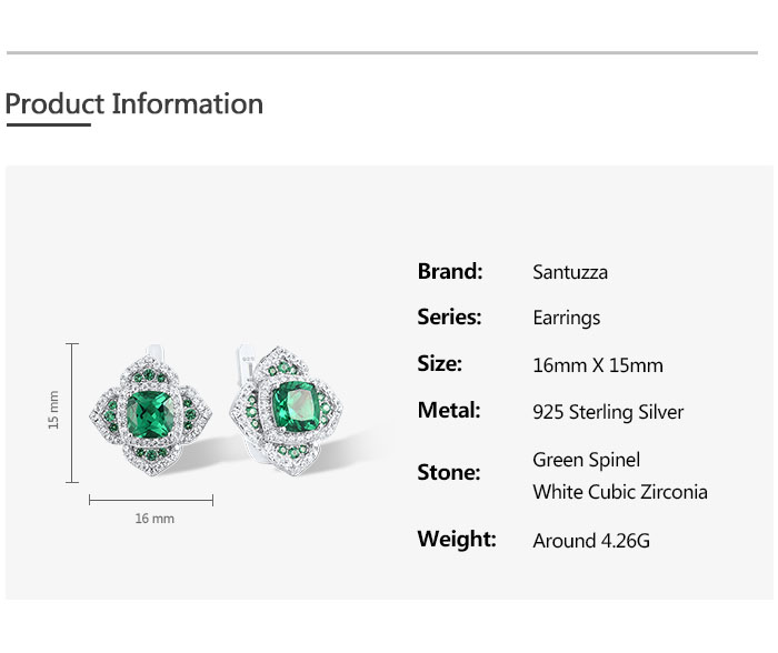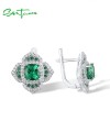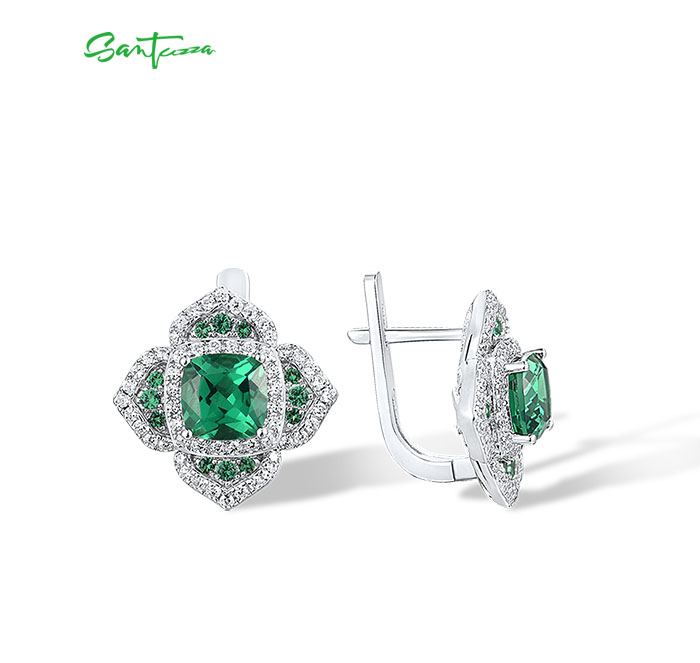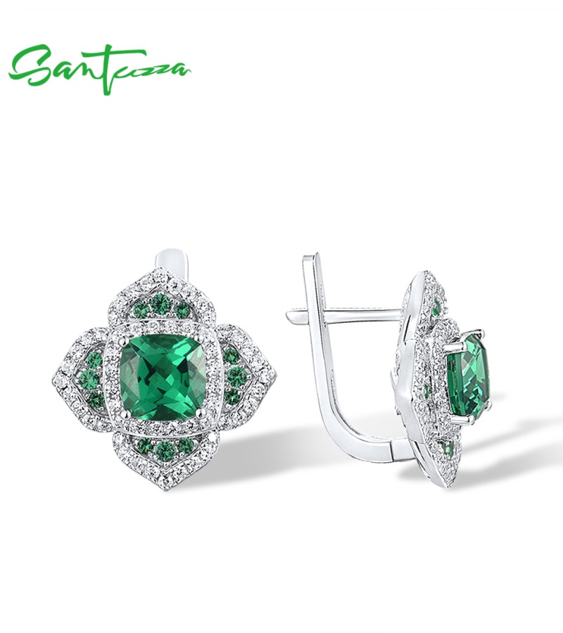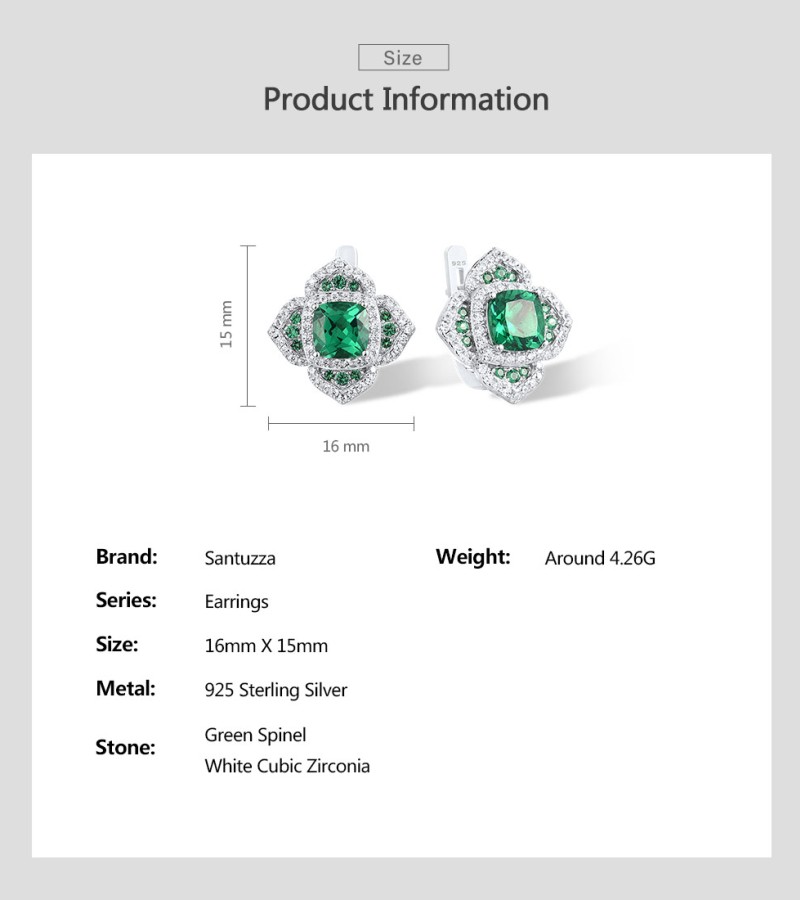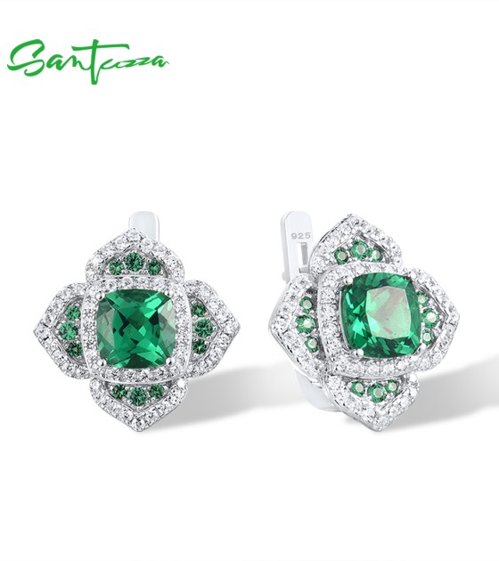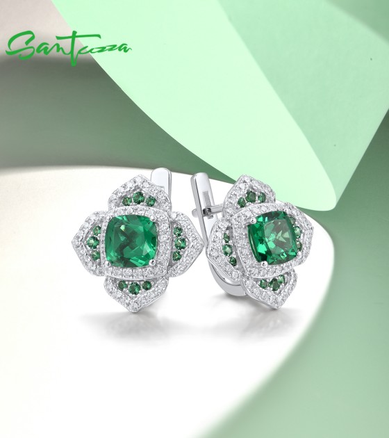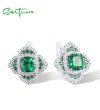 SANTUZZA 925 Sterling SilverEarrings Square Green Spinel White CZ Flower Fine Jewelry