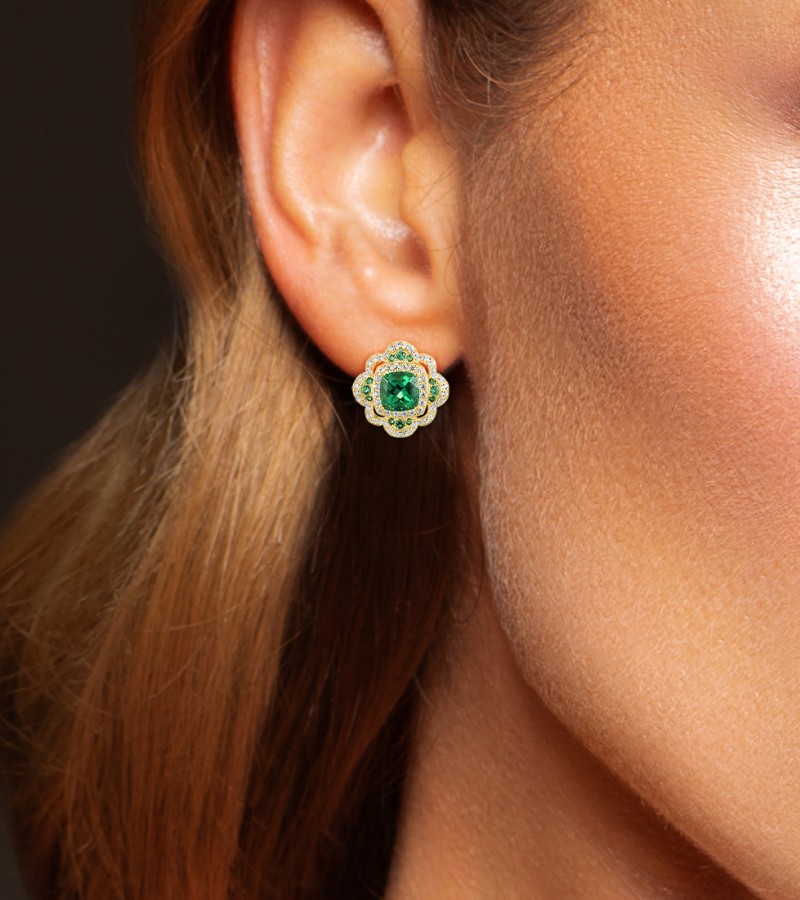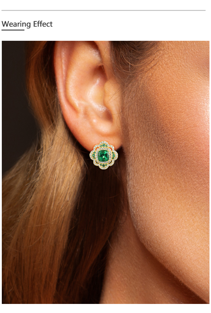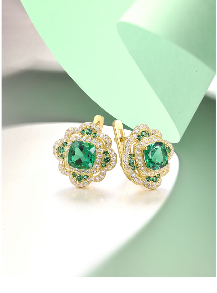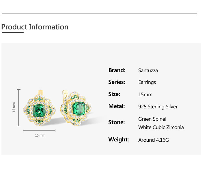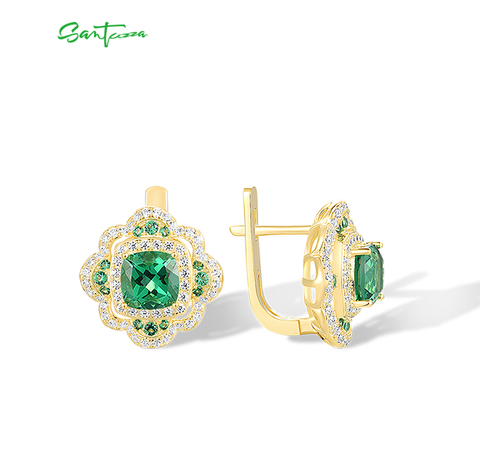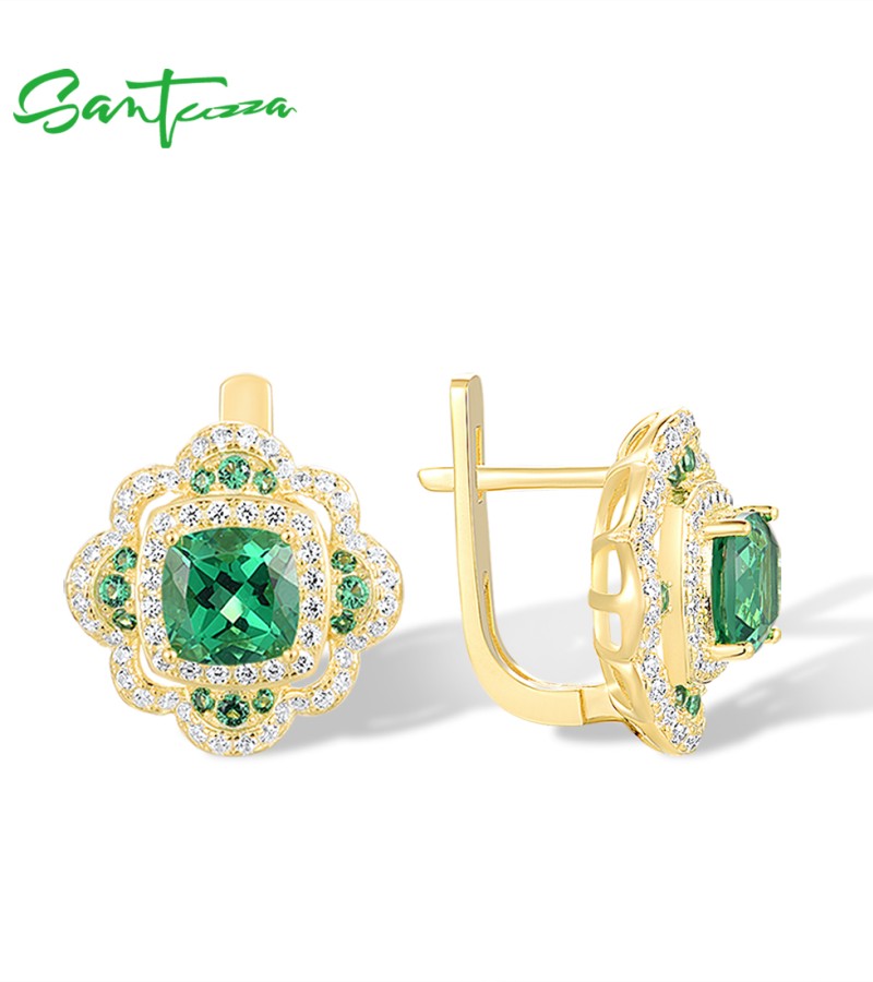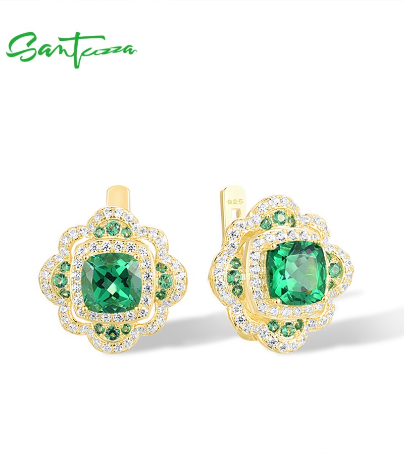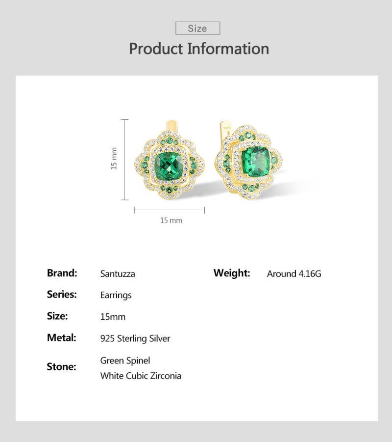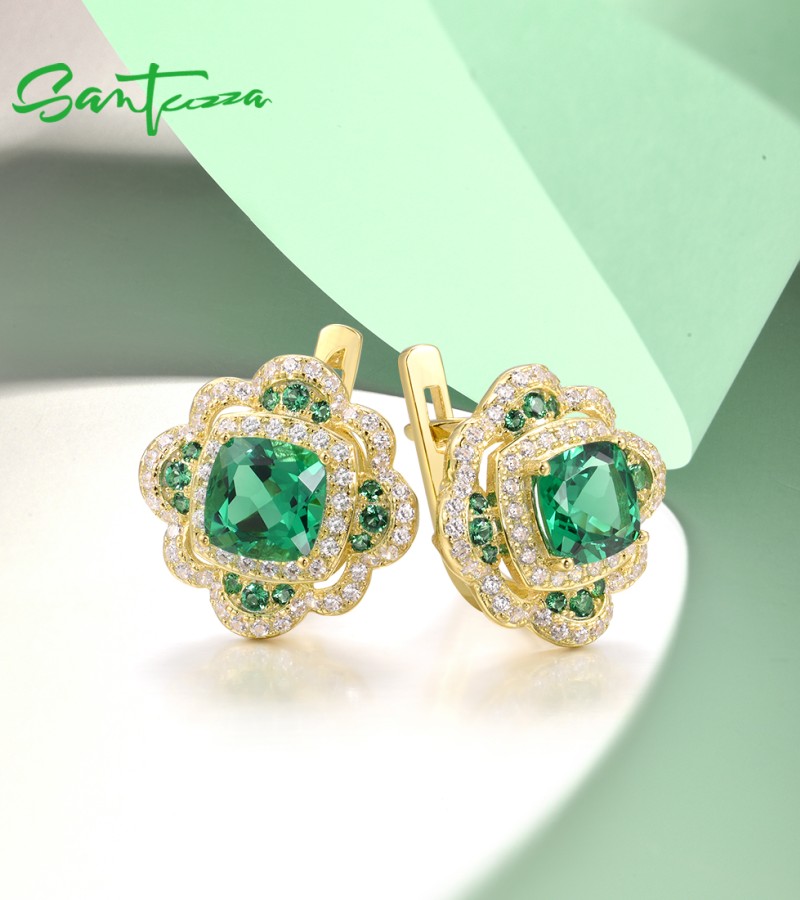 SANTUZZA 925 Sterling Silver Earrings Sparkling Square Green Spinel White CZ Flower Jewelry