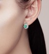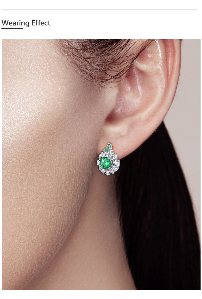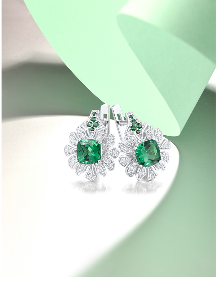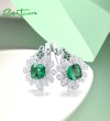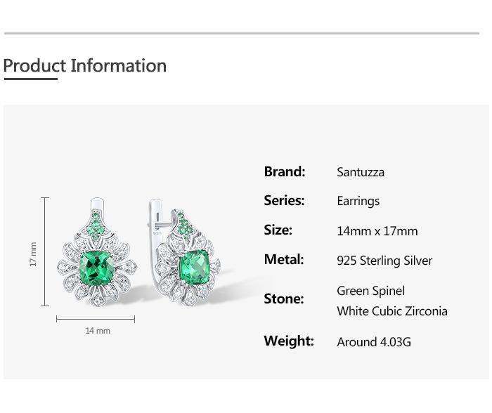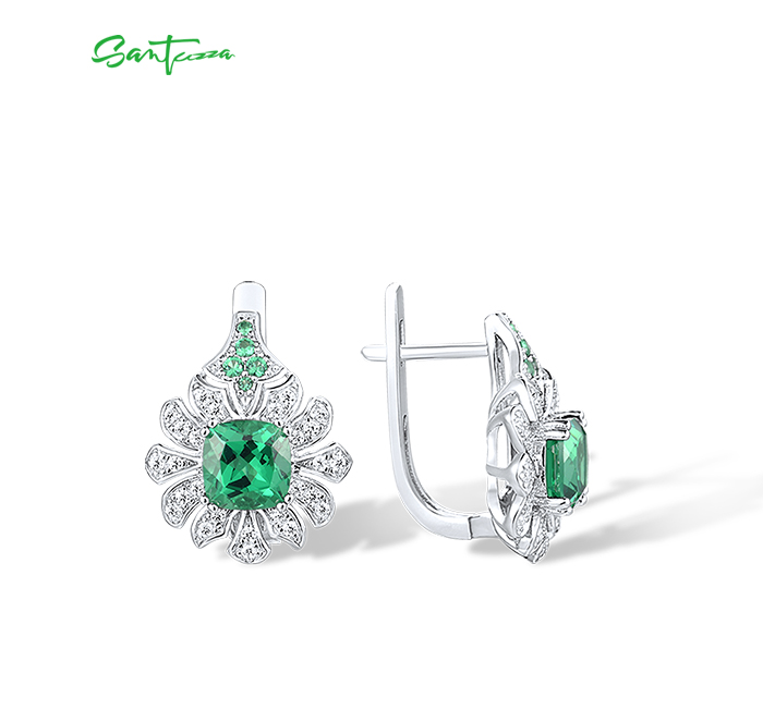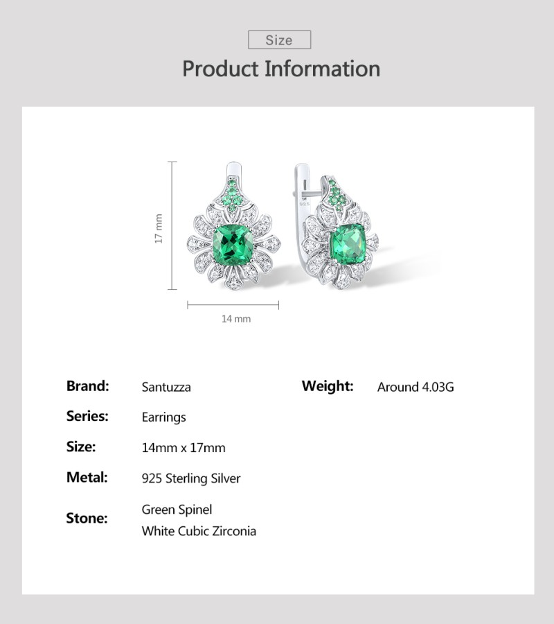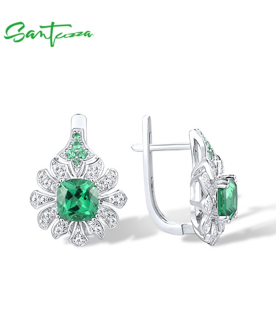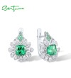 SANTUZZA 925 Sterling Silver Earrings Square Green Spinel White CZ Flower Fine Jewelry