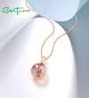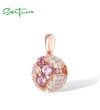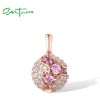 SANTUZZA 925 Sterling Silver Pendant Ball Created Pink Sapphire White CZ Fine Jewelry