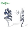 SANTUZZA 925 Sterling Silver Stud Earrings Blue White Stone Delicate Flower Fine Jewelry