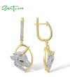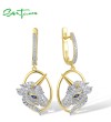 SANTUZZA 925 Sterling Silver Unicorn Earrings Blue Nano White Cubic Zirconia Gold Plated Dangling Jewelry