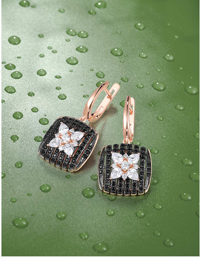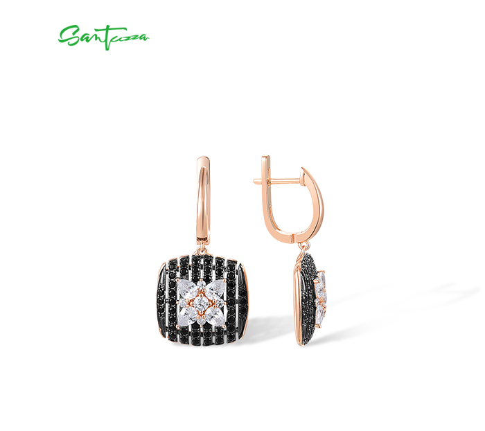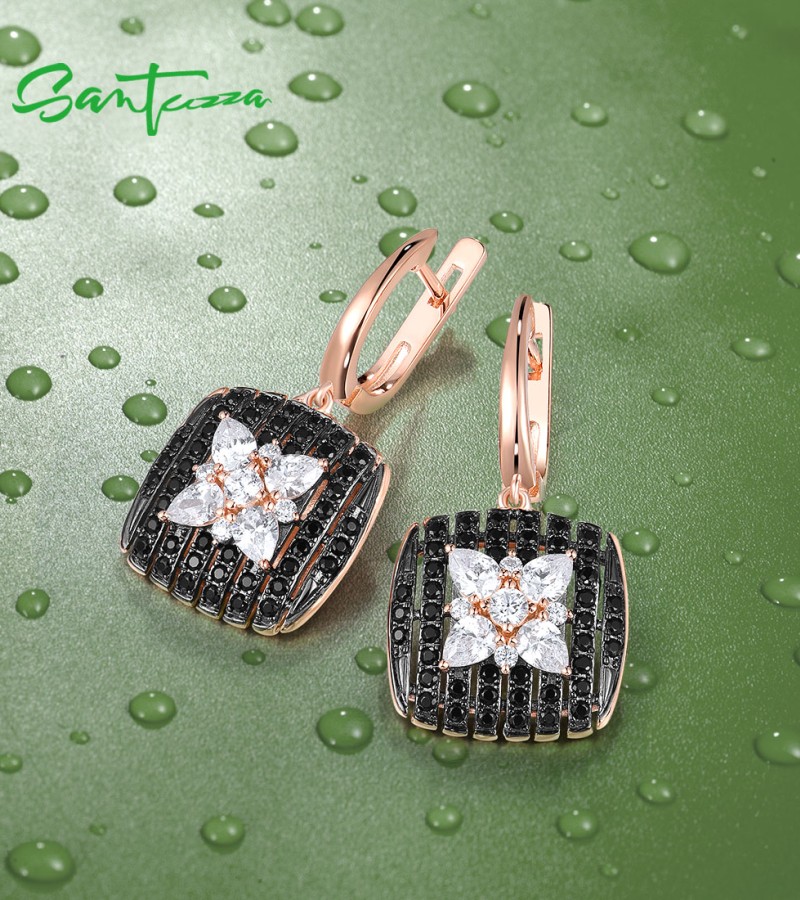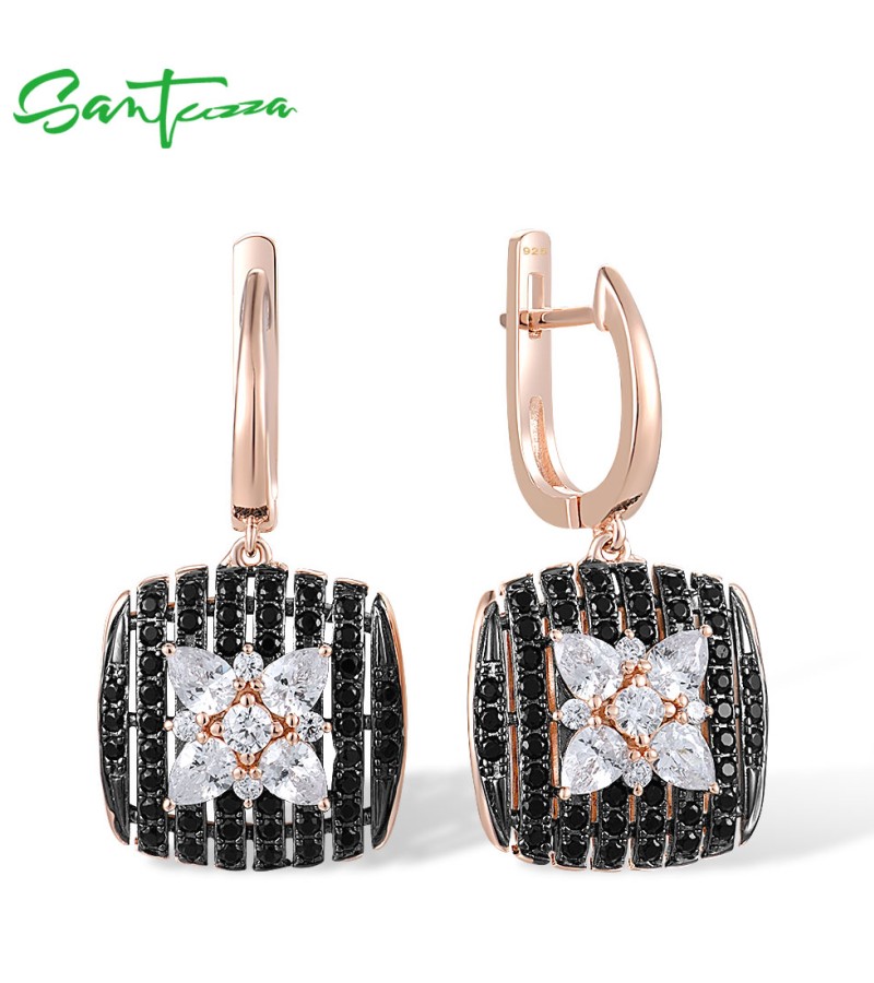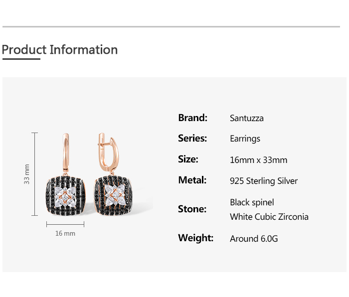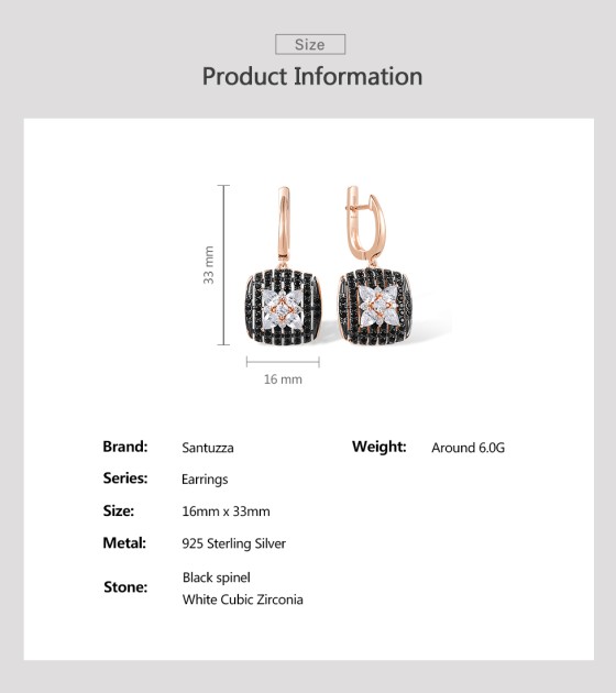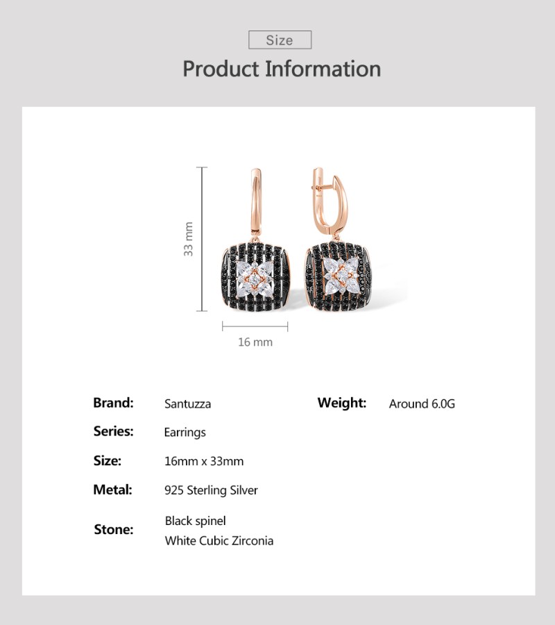 SANTUZZA 925 Sterling Silver Earrings Black spinel White Cubic Zirco Cushion Star Fine Jewelry