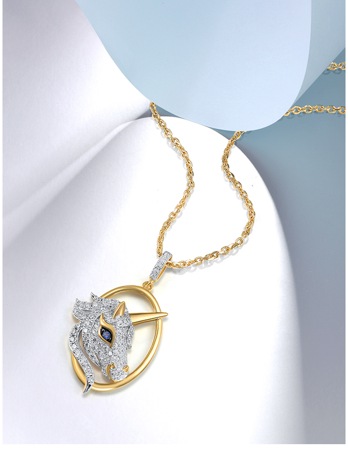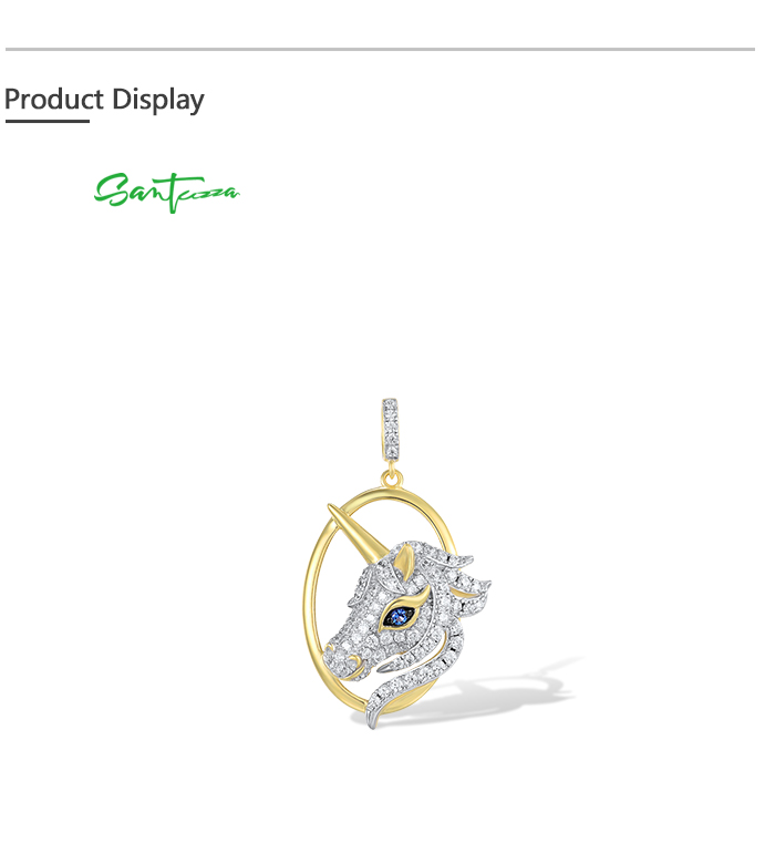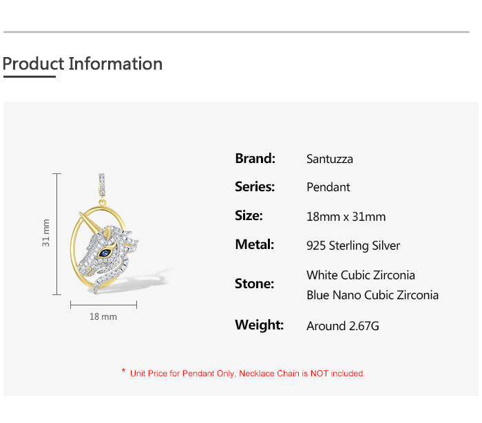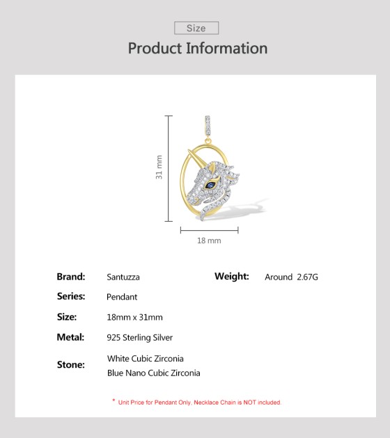 SANTUZZA 925 Sterling Silver Unicorn Pendant Blue Nano White Cubic Zirconia Jewelry
