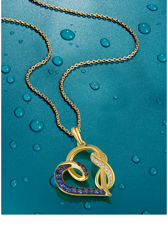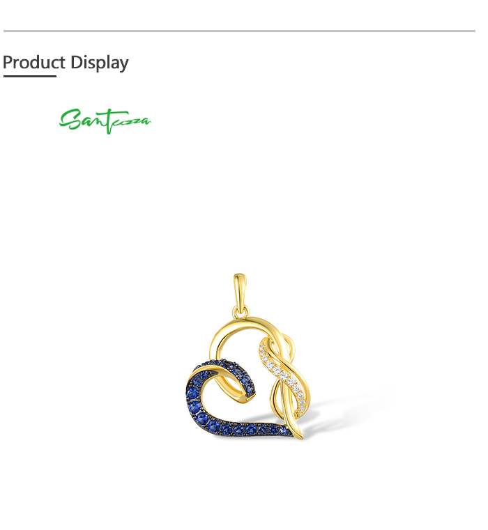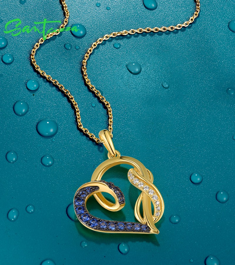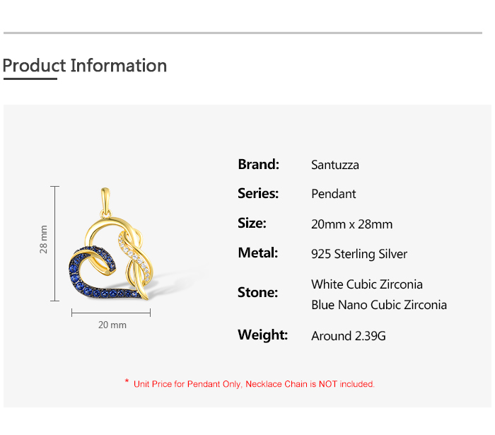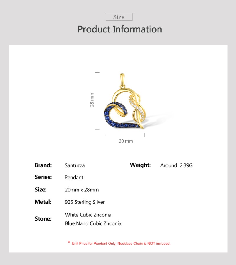 SANTUZZA 925 Sterling Silver Pendant Blue Nano / White Cubic Zirconia Yellow Plated Heart Jewelry