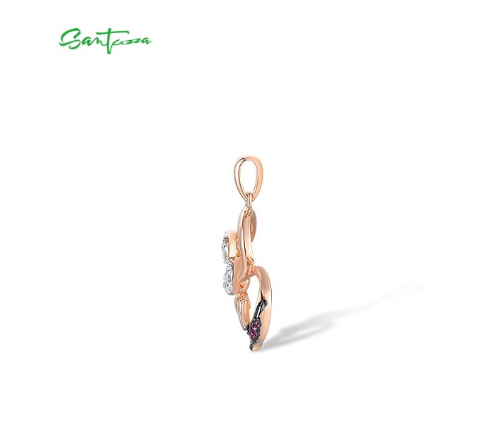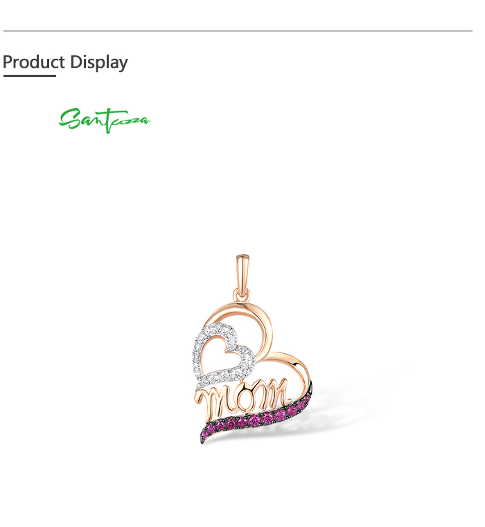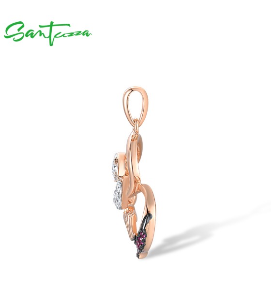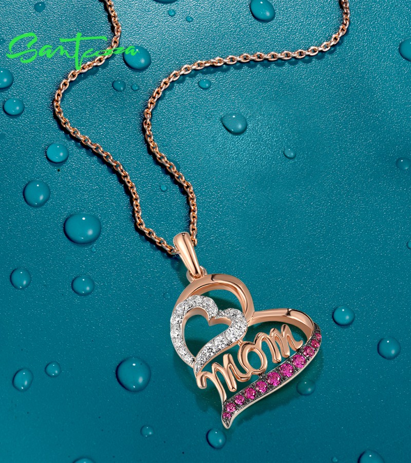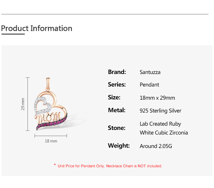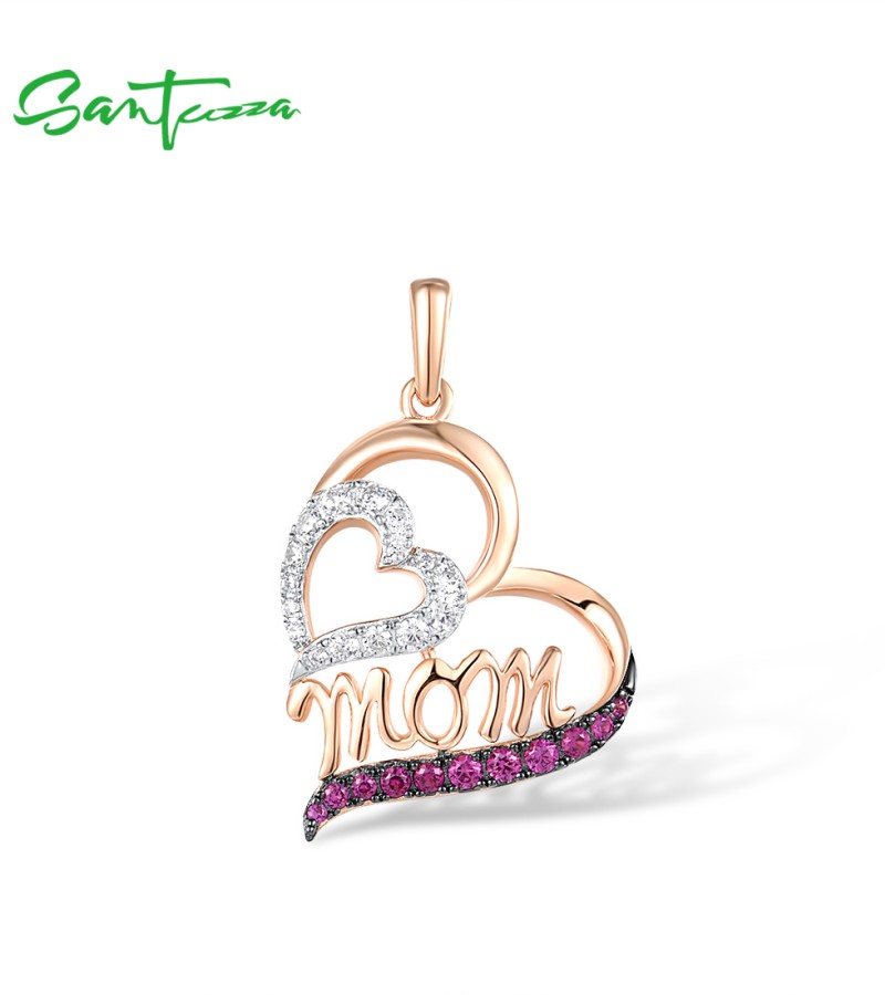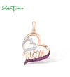 SANTUZZA 925 Sterling Silver Pendant Created Ruby White Cubic Zirconia Love Heart Mothers Day Jewelry