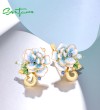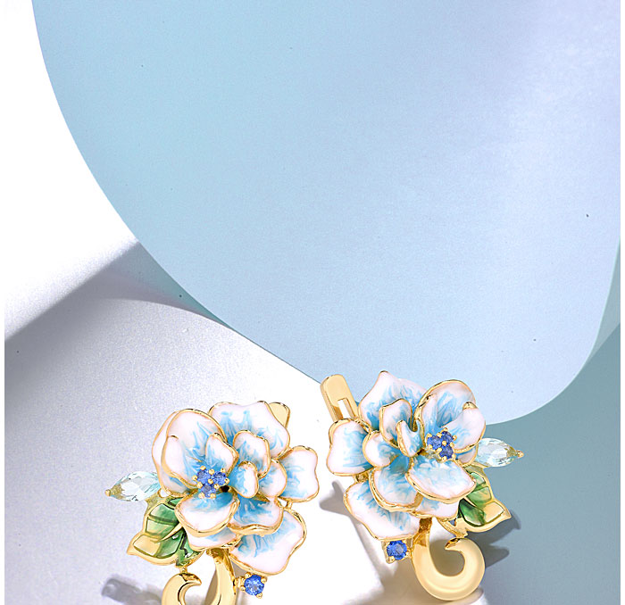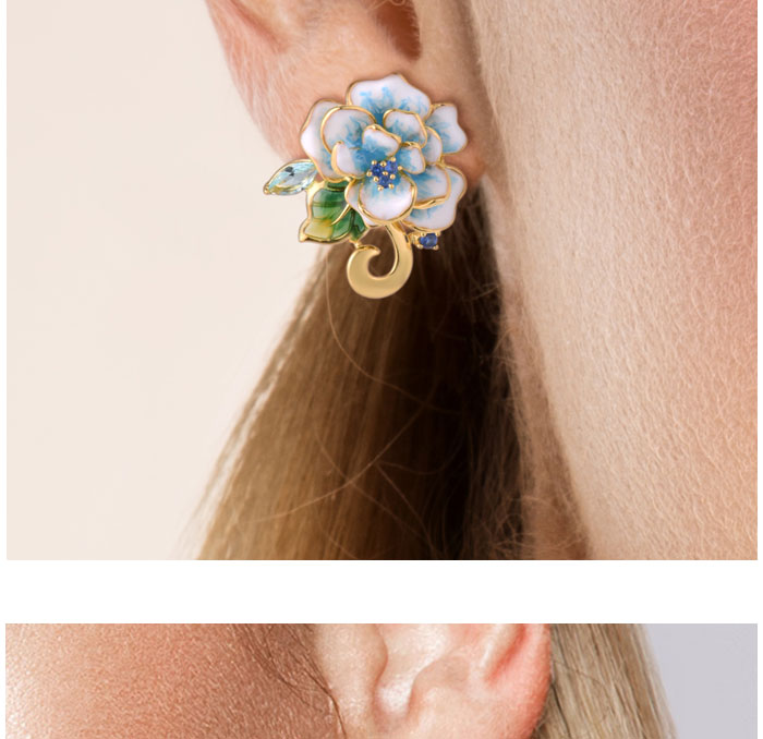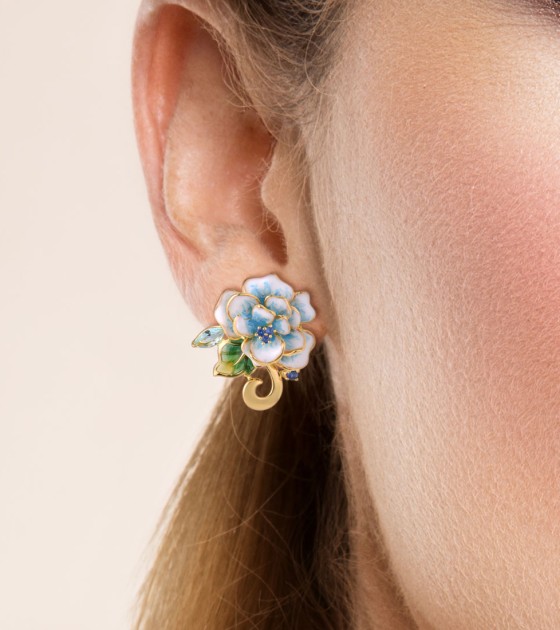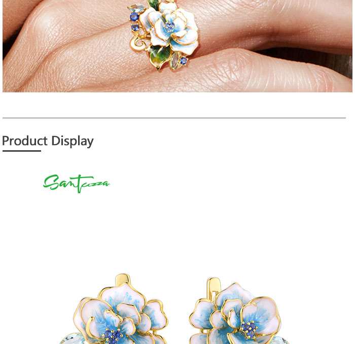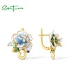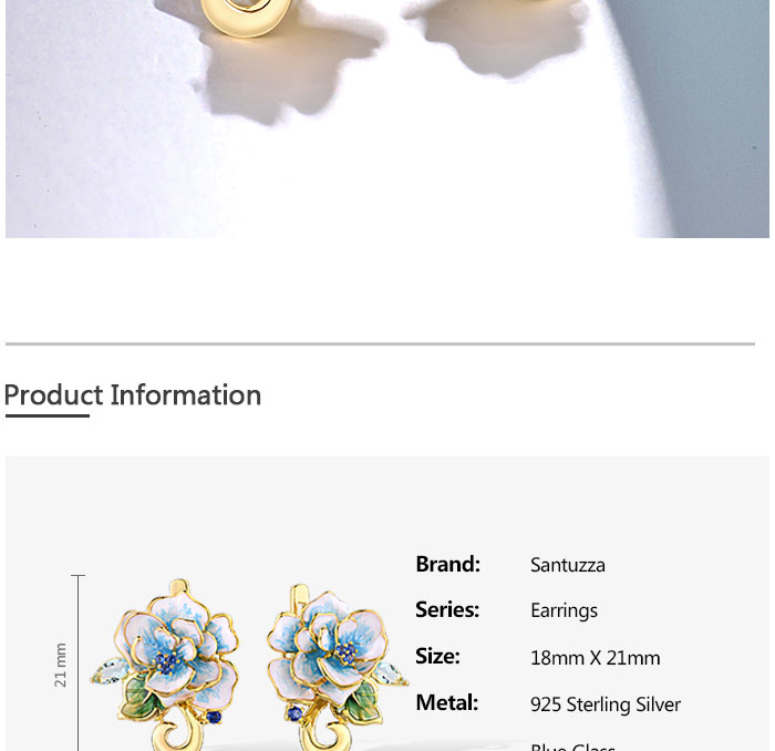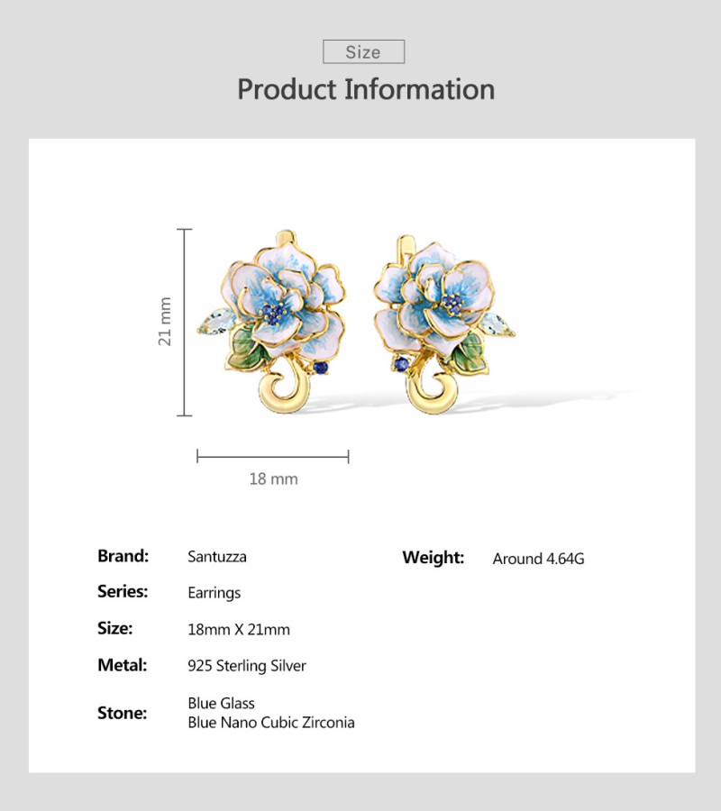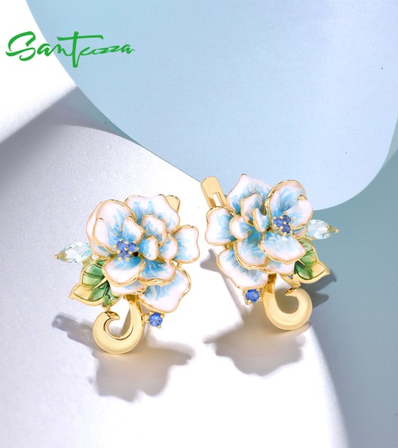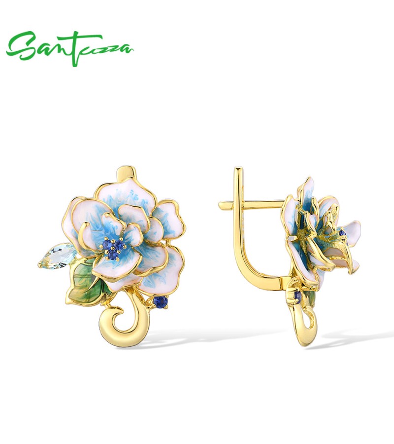 SANTUZZA 925 Sterling Silver Earrings Blue Blooming Flower Jewelry Enamel