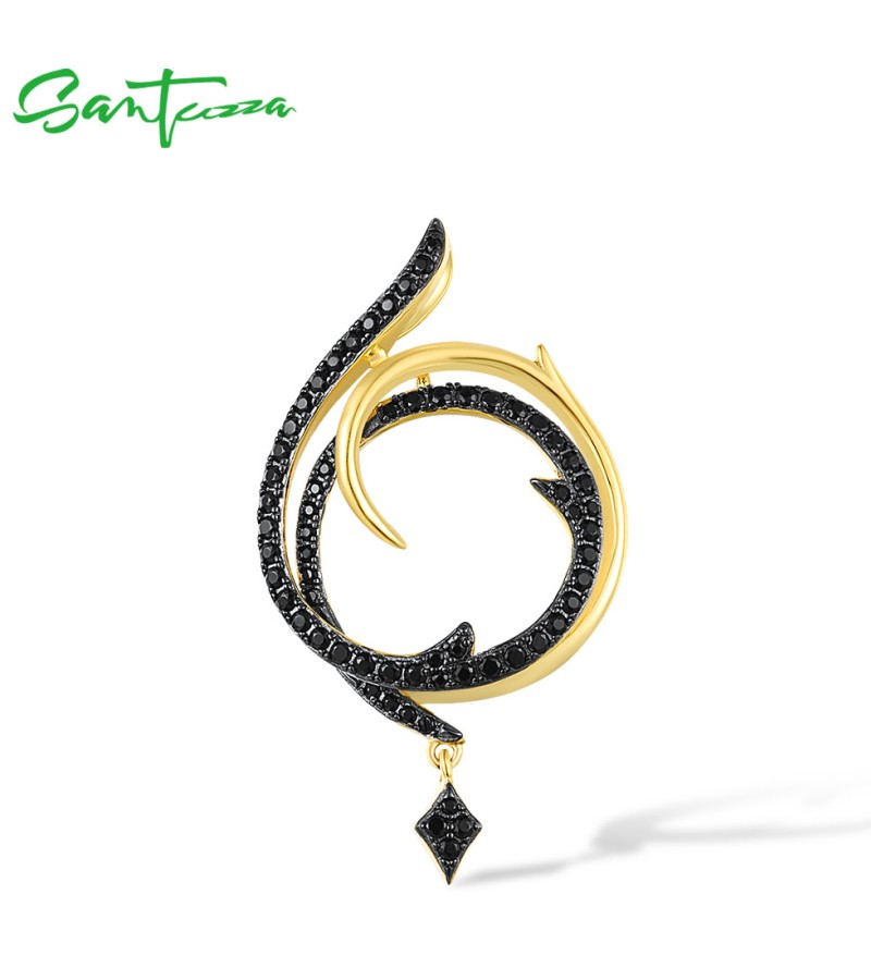 SANTUZZA 925 Sterling Silver Earrings Black Spinel Gold Color Fine Jewelry