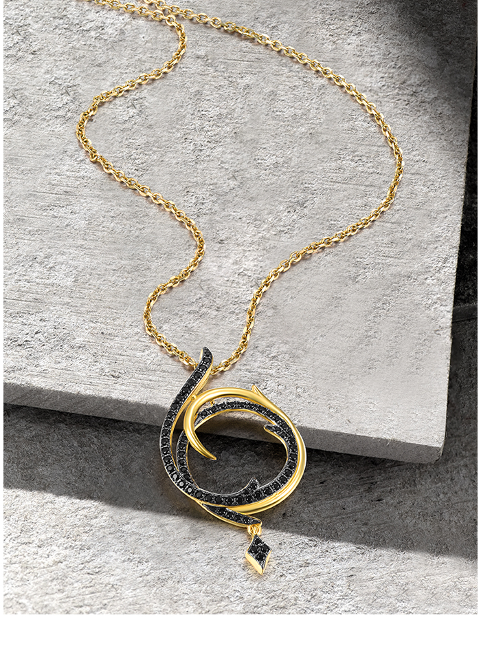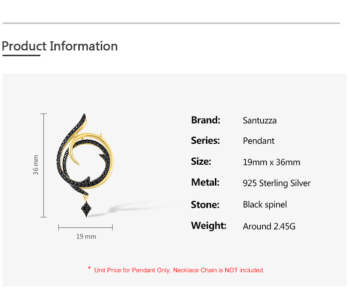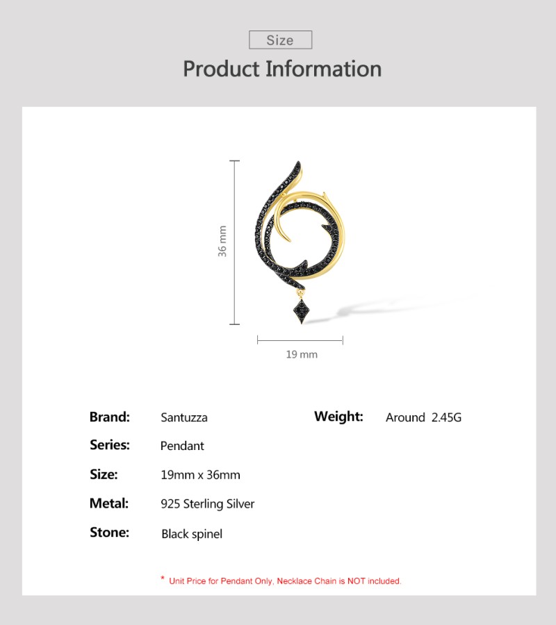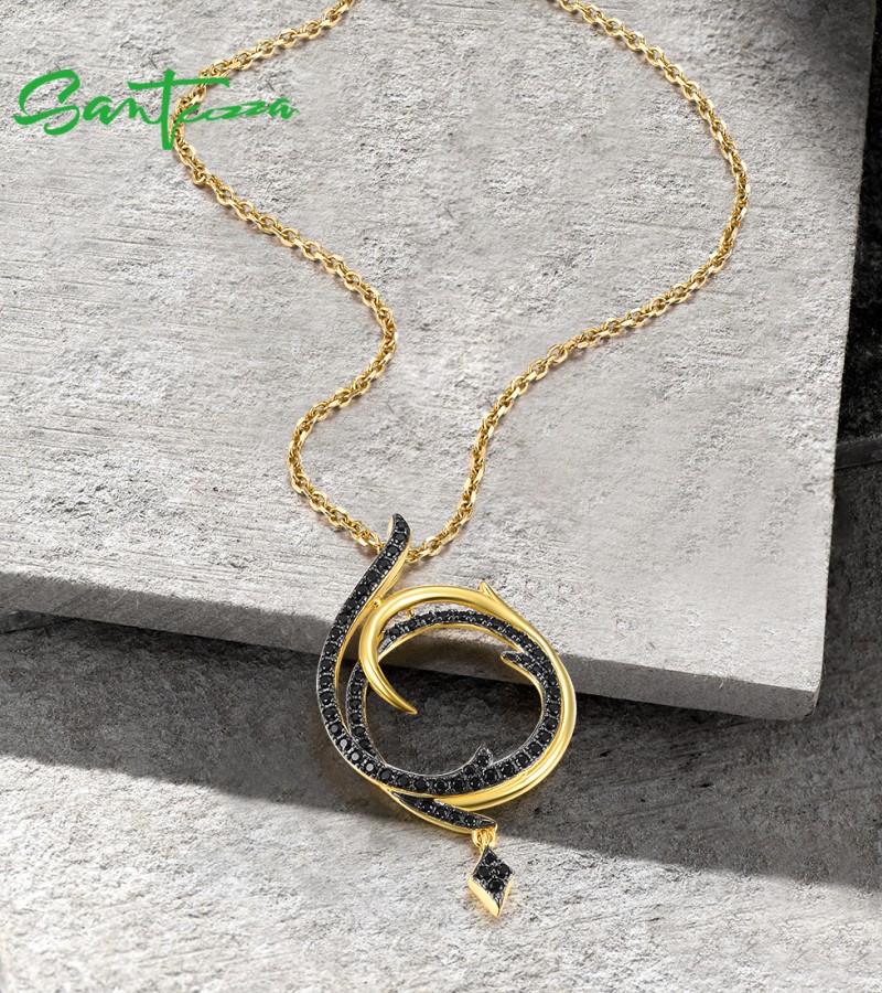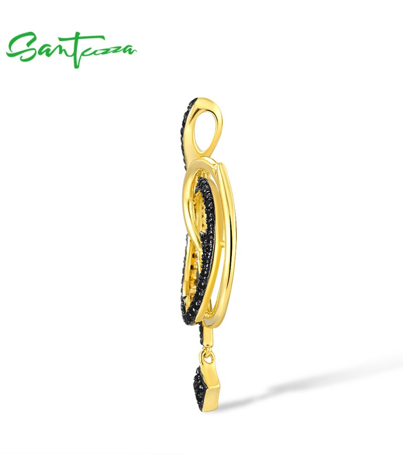 SANTUZZA 925 Sterling Silver Pendant Black Spinel Yellow Plated Fine Jewelry