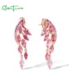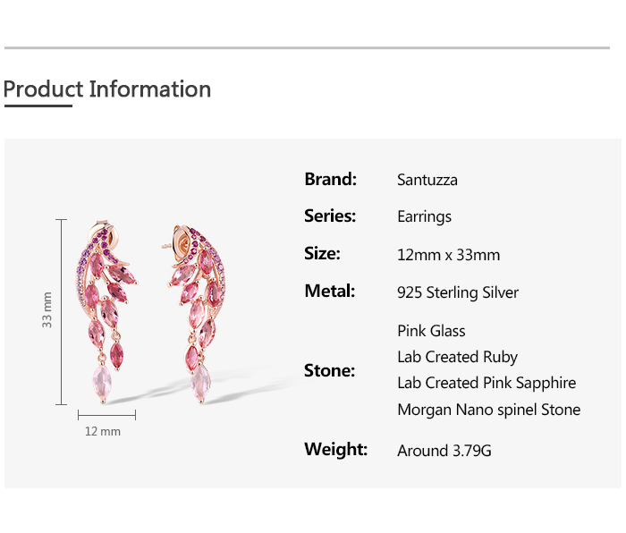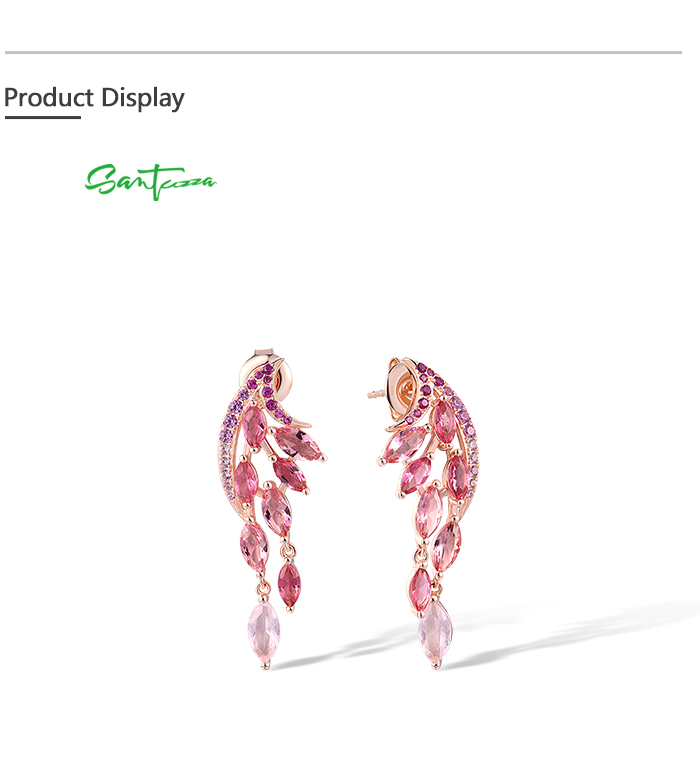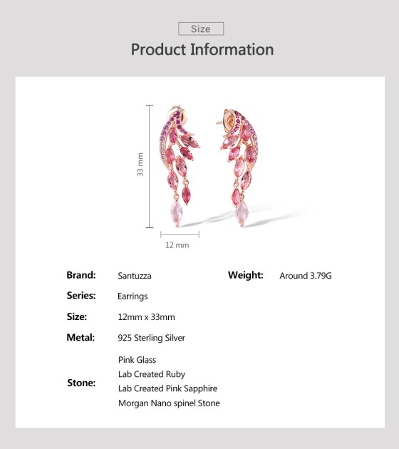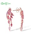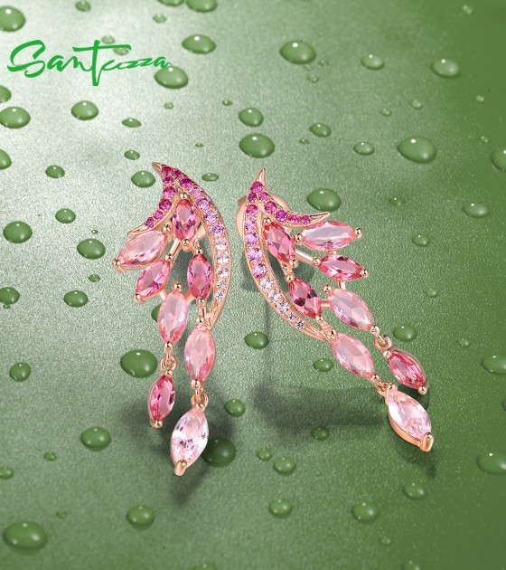 SANTUZZA 925 Sterling Silver Stud Earrings Created Pink Sapphire /Ruby Ombre Marquise Jewelry
