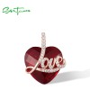 SANTUZZA 925 Sterling Silver Pendant Red Stones White CZ Love Heart Pendant Fine Jewelry