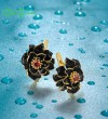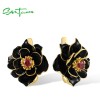SANTUZZA 925 Sterling Silver Earrings BlackLotus Enamel Flower Garnet Fine Jewelry