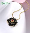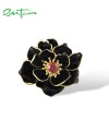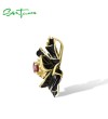 SANTUZZA 925 Sterling Silver Pendant Black Enamel Lotus flower Garnet Fine Jewelry