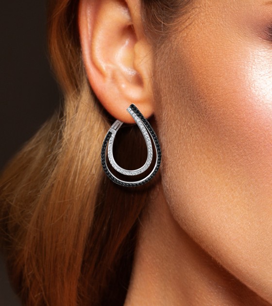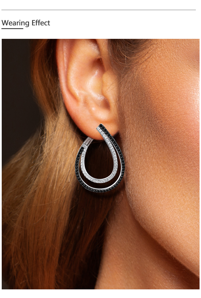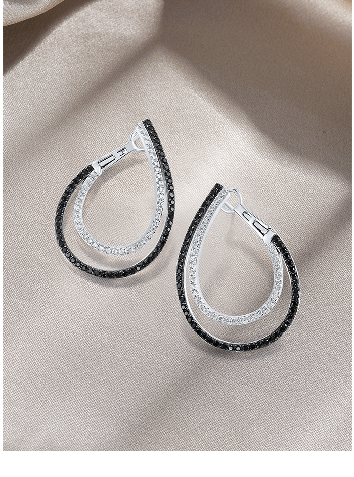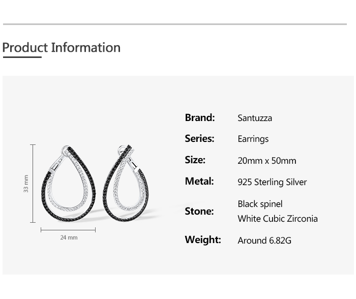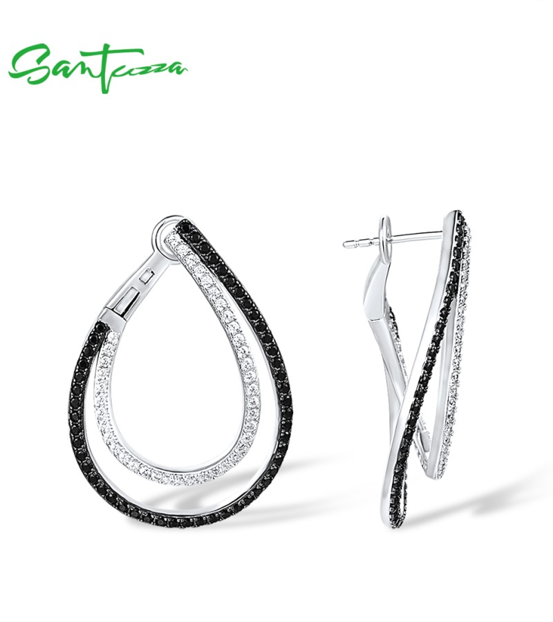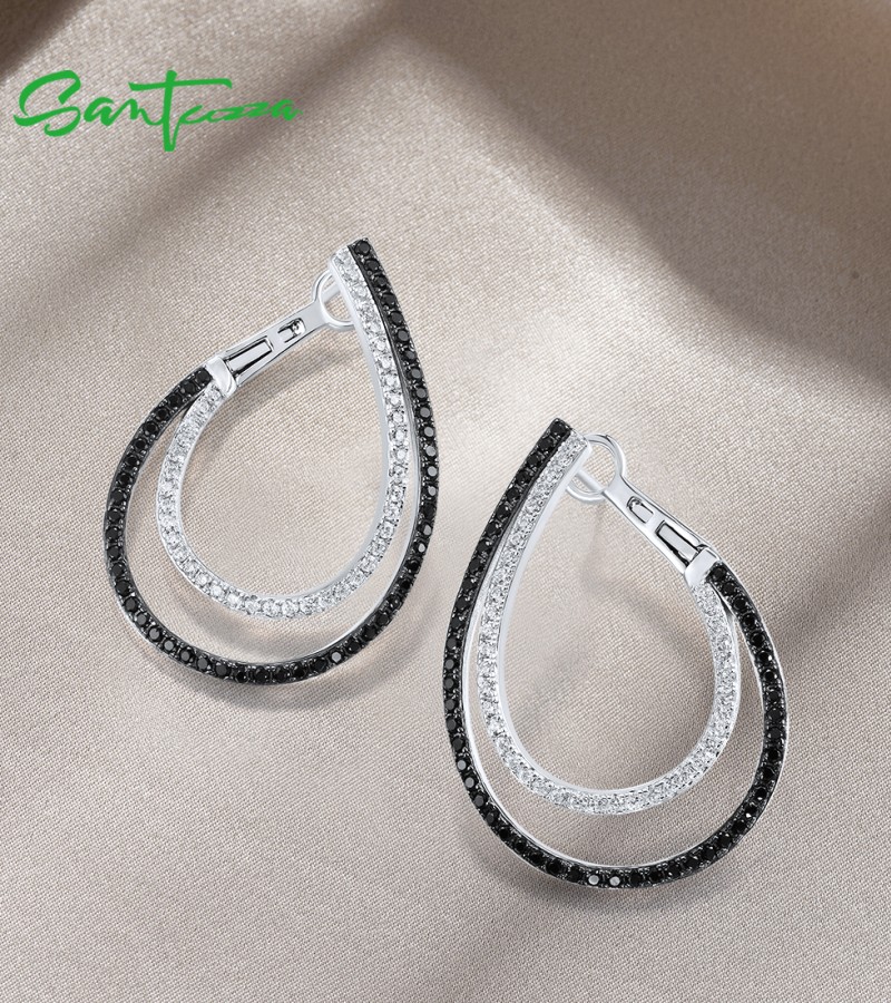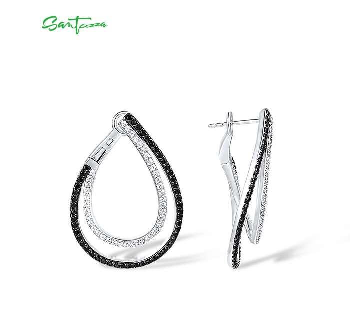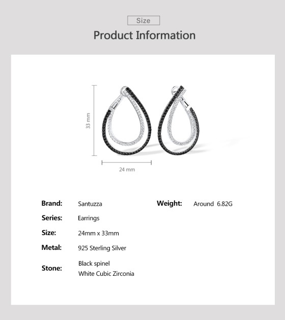 SANTUZZA 925 Sterling Silver Earrings Black Spinel White Cubic Zirconia Fine Jewelry